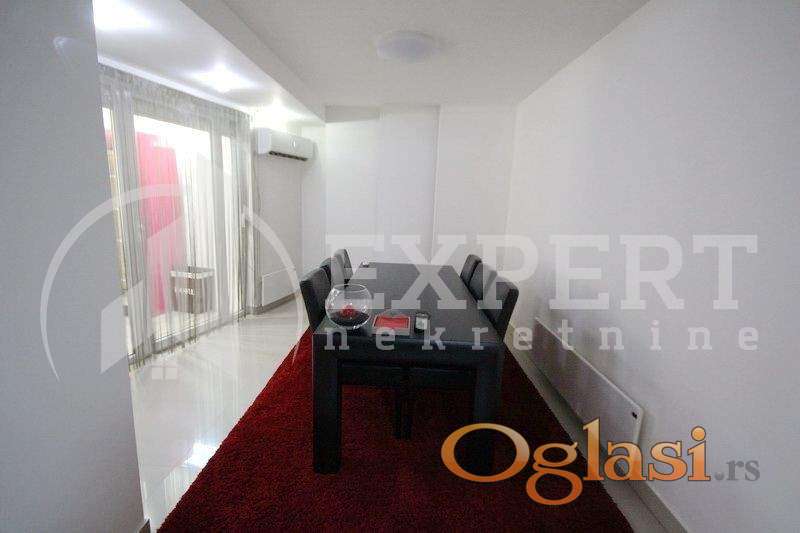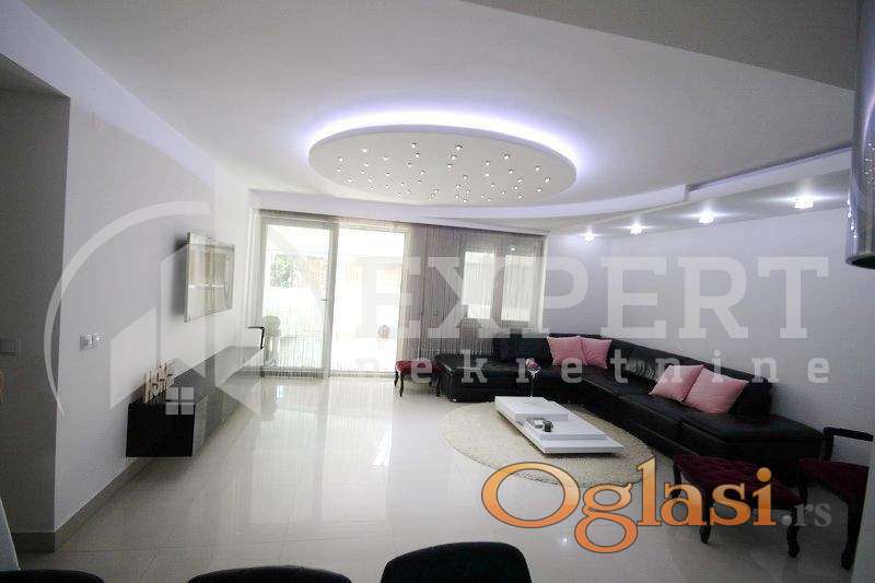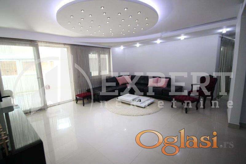 U ponudi prelep luksuzan komforan stan na izuzetnoj lokaciji u neposrednoj blizini pešačke zone. Nalazi se u jednom od natraženijih delova grada zbog blizine brojnih marketa, tržnih centara, kao i mnogih bitnih institucija. Stan je po strukturi petosoban sa izuzetnim rasporedom prostorija, uknjižene površine 186m2. Sastoji se od centralnog hodnika, komfornog dnevnog boravka sa trpezarijom i kuhinjom pregradjenom šankom, koji u nastavku ujedno ima funkciju i radne površine, američki tip kuhinje. U levom delu hodnika su tri spavaće sobe, toalet i fantastično moderno kupatilo. Dnevni boravak podeljen je u dva dela po zapadnom stilu. U nastavku je drugi deo boravka sa portalima celom dužinom stana i ubedljivo je najlepši i najvredniji deo ove izuzetne nekretnine površine 90m2. Portali su sa ugrađenim stop sol staklima vrhunskog nemačkog proizvođača. Stan se nalazi na prvom spratu u kvalitetnoj zgradi novije gradnje sa liftom. Zgrada ispunjava sve standarde moderne izgradnje. Posebno naglašavamo da je kompletan enterijer u stanu renoviran i adaptiran u poslednje tri godine, od podova, zidova, rasvete, nameštaja, tehnike, do opreme, od najpoznatijih svetskih proizvođača Villeroy Boch za slavine i sanitarne ugradne delove, Samsung i Gorenje za tehniku i aparate, garniture i francuski ležaj od kože Indy. U stanu je vrhunska nemačka stolarija sa alu roletnama, podovi u hodniku, trpezariji, prvom delu dnevnog boravka su mermerne ploče, gde je postavljeno podno grejanje, a u ostalim prostorijama kvalitetan parket. Treća spavaća soba je u funkciji američkog plakara sa dodatnom manjom lođom, ostavom u funkciji cipelara. Materijal za ugradne plakare i kuhinju je od najkvalitetnijeg medijapana. Enterijer je opremljen sa ukusom i u modernom stilu od strane arhitekte. Stan je uknjižen, čisto vlasništvo 1 kroz 1, mogućnost kupovine putem kredita. Postoji mogućnost kupovine sa delom nameštaja u dogovoru sa vlasnicima.