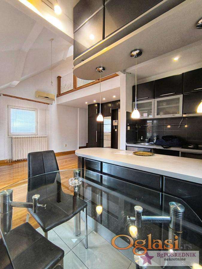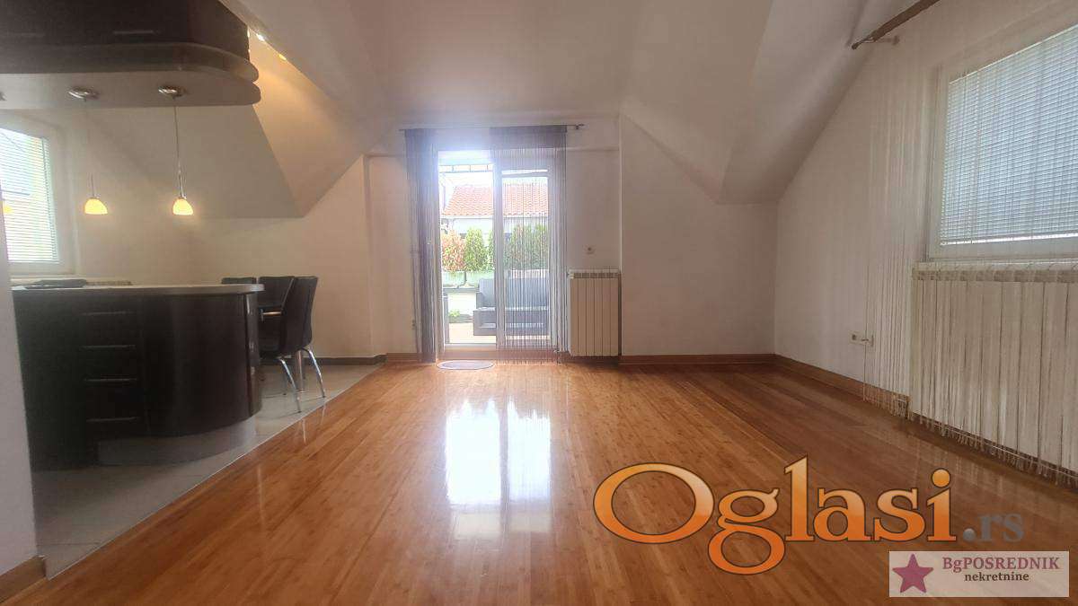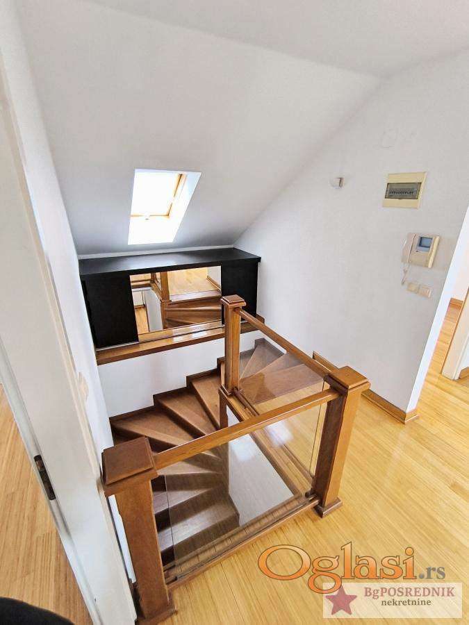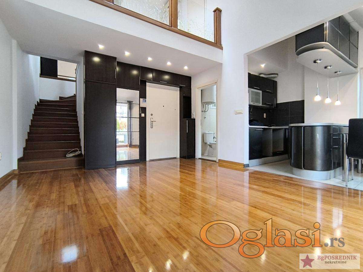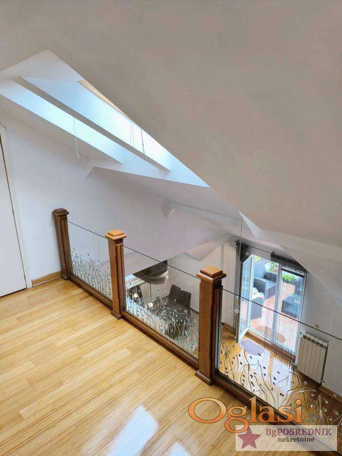 Stan je na dva nivoa sa terasom od 15m2, ima velike prozore i vrlo je svetao.