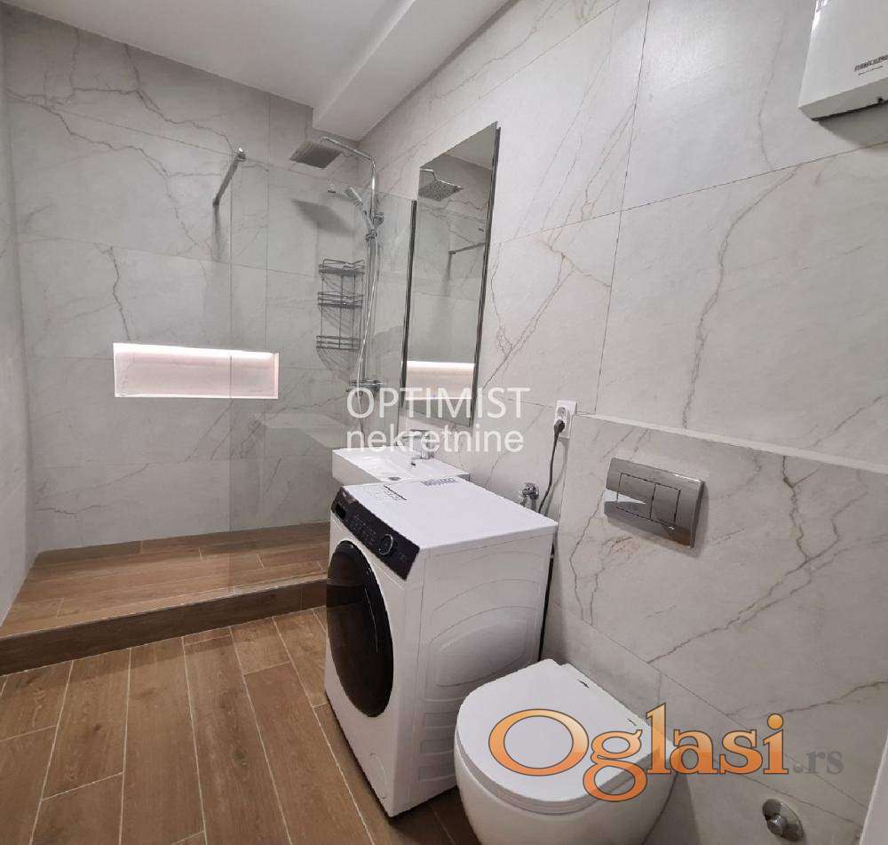 Optimist nekretnine vam nude luksuzan jednosoban stan od 43m2, na prizemlju male zgrade rezidencijalnog tipa, nadomak Belog dvora na Dedinju.