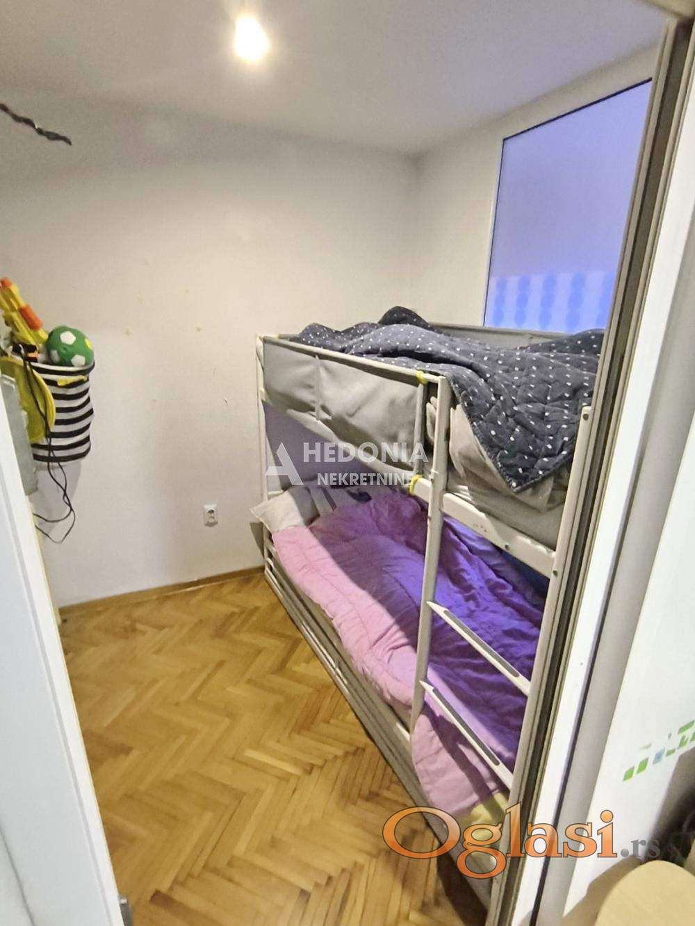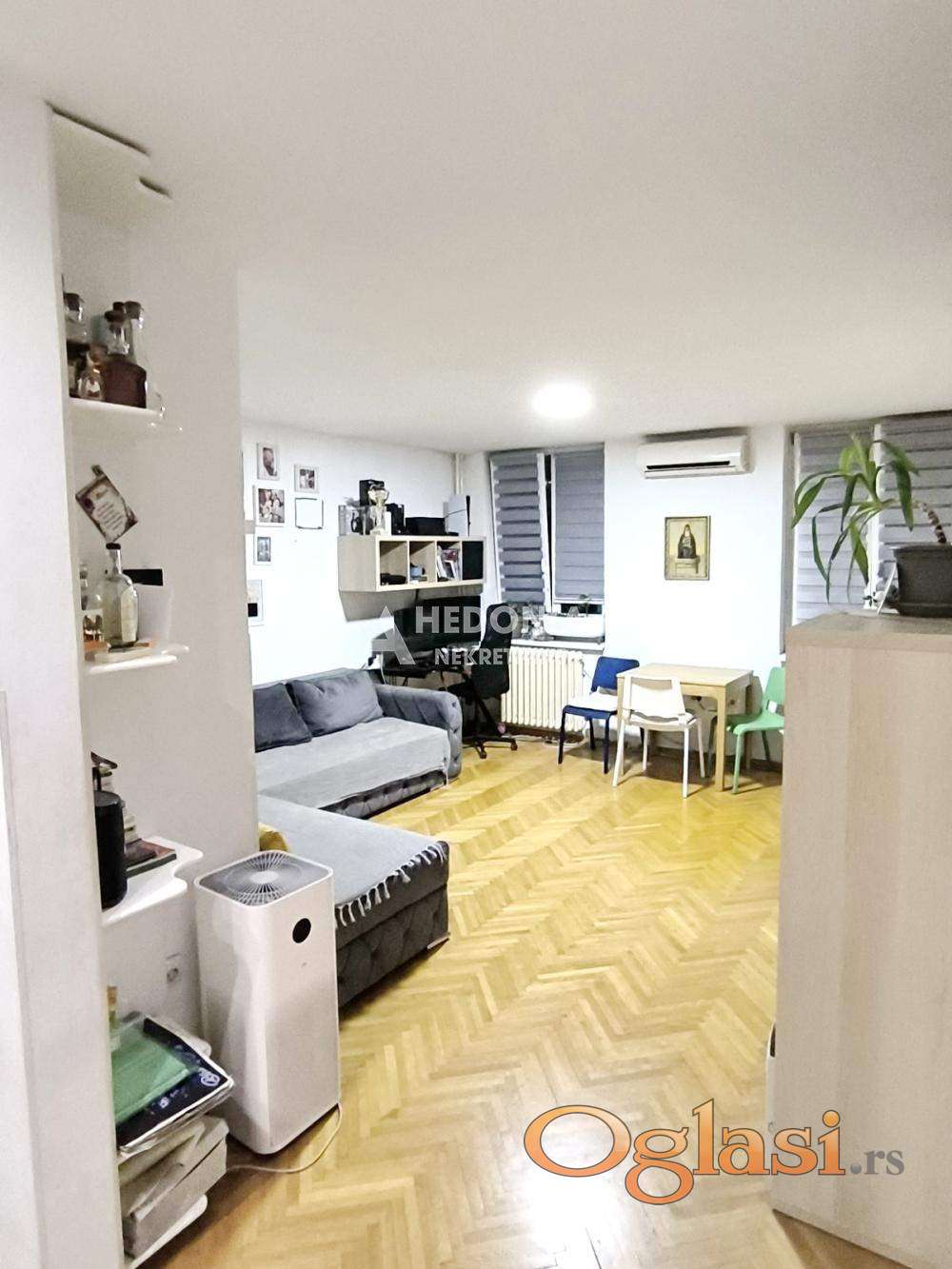 U neposrednoj blizini Ade Ciganlije, u parkovskom okruženju ulice, nalazi se ovaj jednosoban stan. Smešten je na drugom spratu u urednoj i održavanoj zgradi od fasadne cigle. Infrastruktura je kompletna, u blizini su vrtić, osnovna i srednja škola, Dom zdravlja kao i svi ostali neophodni sadržaji za udobno stanovanje. U prilog lokaciji svakako doprinosi blizina "beogradskog mora" - Ade Ciganlije, najposećenijeg ekološkog dela grada sa kupalištem i bogatim ugostiteljskim i zabavnim sadržajima. Stan je okrenut suprotno od ulice tako da ga čini tihim i mirnim, bez buke. Sastoji se iz hodnika, kuhinje, dnevne sobe, spavaće sobe, kupatila i terase.