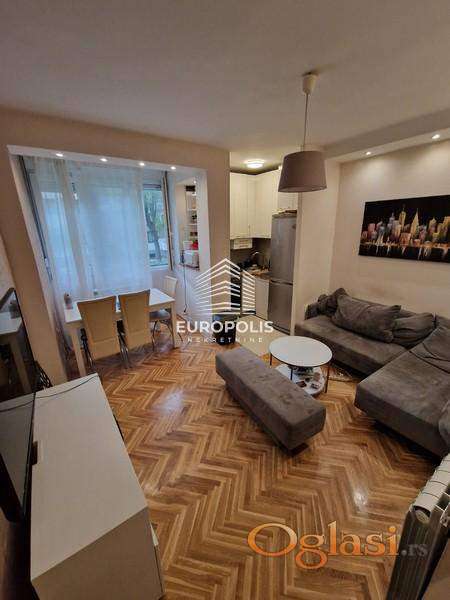 Stan se sastoji od hodnika, prostrane dnevne sobe sa kuhinjom i trpezarijom, dve spavaće sobe i moderno opremljenog kupatila. PVC stolarija, hoblovan i lakiran parket, nova kuhinja, kupatilo i zamenjene sve elektro instalacije i cevi – sve je već urađeno, tako da se možete odmah useliti bez dodatnih ulaganja.
