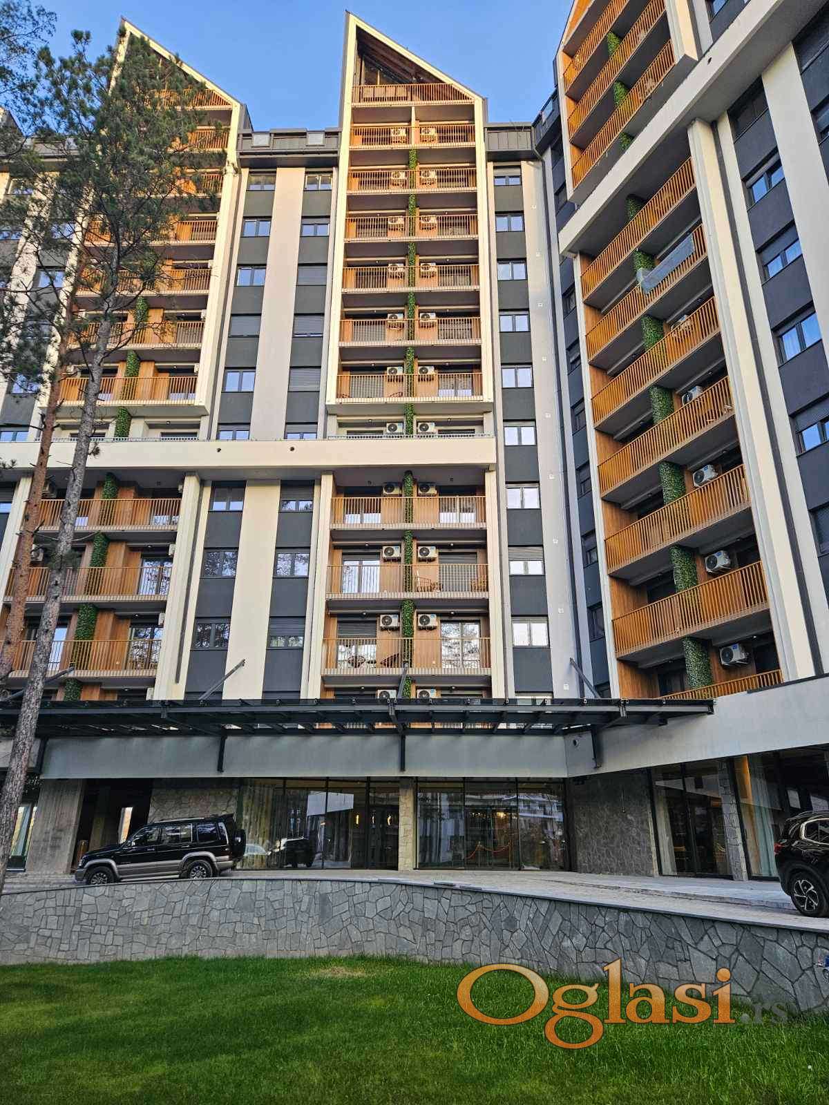 Na prodaju , odličan stan 39m2 , potpuno nov i opremljen . Uknjižen . Uz stan ide i garažno mesto sa ostavom od 9m2 , od kojeg se direktno liftom dolazi do sprata na kojem se nalazi stan . U kupatilu je podno grejanje . Stan je opremljen Smart sistemom , preko koga se može otključati stan , upaliti / ugasiti grejanje , bojler .... Stan se nalazi na 3 spratu , od 12 postojećih , okrenut ka Borovoj šumi i Dino Park-u. Zgrada je u mirnom delu , na samo 5 min peške do Jezera . U kompleksu zgrade će se nalaziti najveći Spa centar na Zlatiboru koji će se prostirati na 3000 kvadrata sa otvorenim i zatvorenim bazenima , Salon lepote , Stomatološku ordinaciju , Kriokomoru , Barokomoru , Teretana , Konferencijska sala , Dečija igraonica , Restoran , Loby bar , Heliodrom . Takođe ukoliko planirate da iznajmljujete nekretninu , to će biti moguće preko recepcije . Postoji mogućnost zamene za stan u Novom Sadu u istom iznosu ili manjem uz doplatu .
