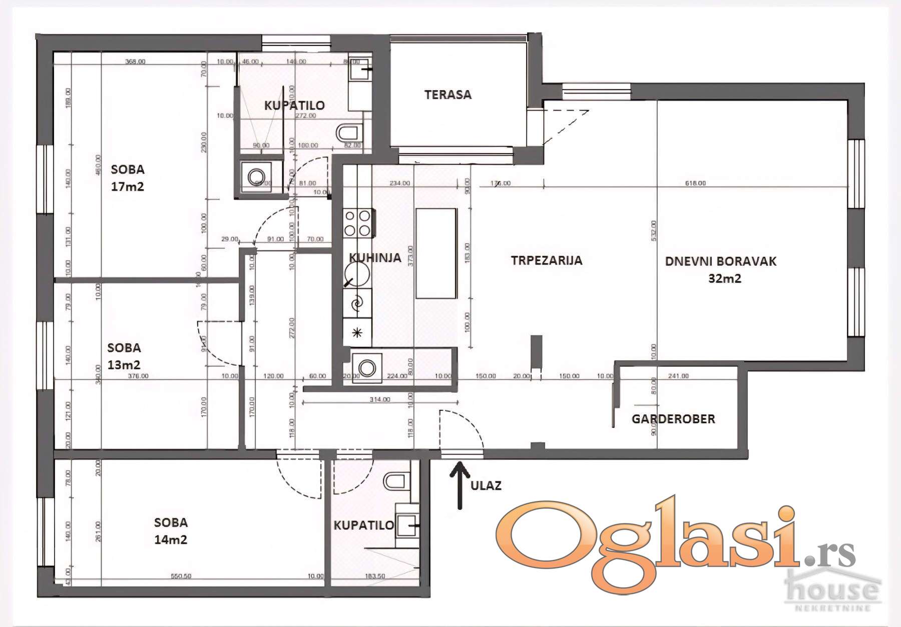 Dve ostave i dva garazna parkinga u suterenu zgrade nisu ukljucena u cenu i nisu uslov za kupovinu.