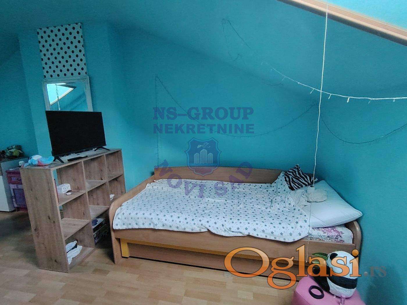 Na prodaju trosoban stan na Grbavici, duplex, u ulici Miše Dimitrijevića. Stan je dvorišno orjentisan, nalazi se na petom spratu zgrade sa liftom. Na donjoj etaži stan sadrži predsoblje, dnevni boravak sa kuhinjom, trpezarijom i ostavom, toalet i terasu. Na gornjoj etaži ima hodnik iz kojeg se ulazi u dve lepe spavaće sobe i kupatilo. Kosine ne ometaju funkcionalnost prostora, budući da počinju na visini 1,70 m. Gore su krovni Velux prozori i kompletno je iznad betonska ploča, koja ovakvim stanovima daje sigurnost od prokišnjavanja. U stanu ostaju svi elementi rađeni po meri (kuhinja i ormani). Za ostale stvari postoji mogućnost dogovora. Stan je uknjižen 1/1 bez tereta, i može da se kupi na kredit. Stan ima pripadajuću podrumsku prostoriju. U dvorištu zgrade dostupan je zajednički parking za stanare. Za sve informacije pozovite nas.