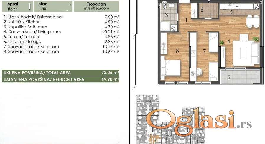 | Sobnost: | Trosoban |