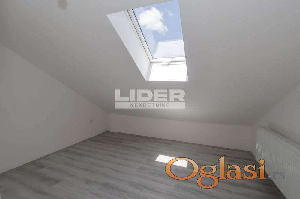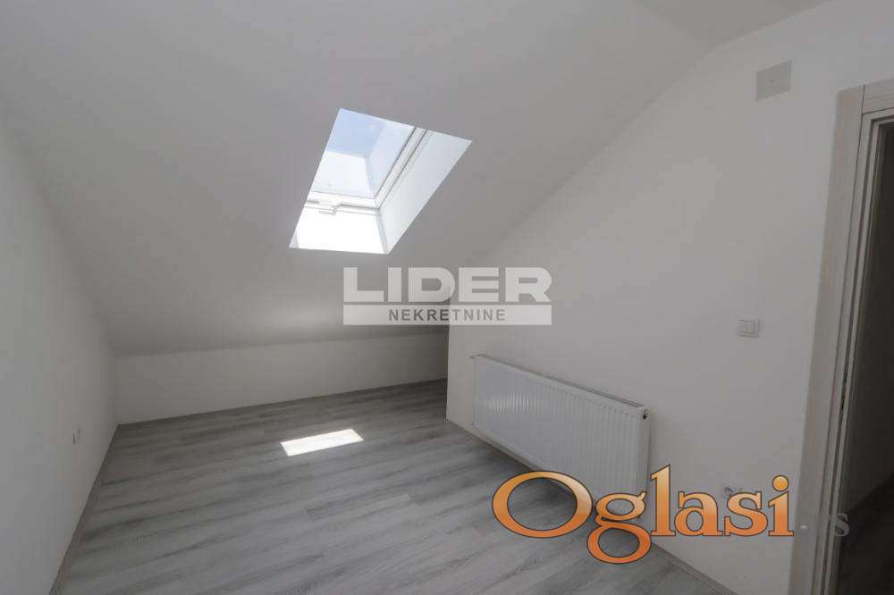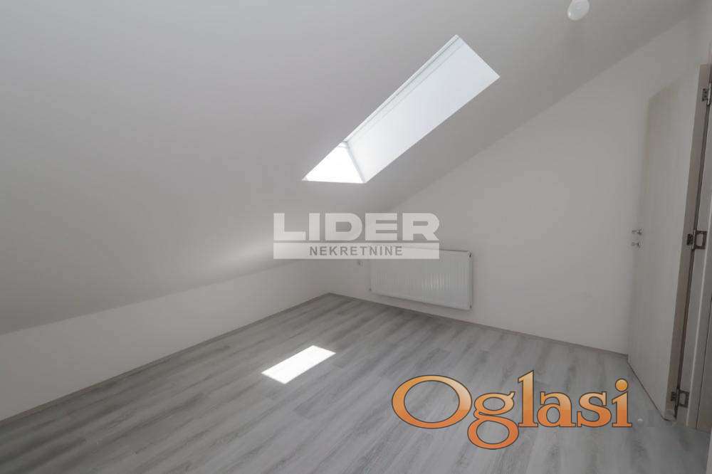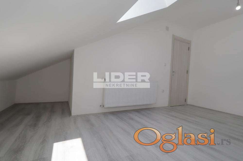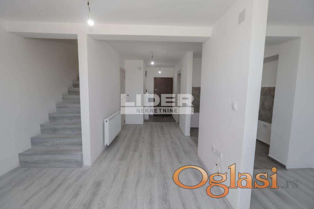Donji etaž - predsoblje, kupatilo, garderober, open space model kuhinja + trpezarija + dnevna soba, terasa. agencijska provizija 2%