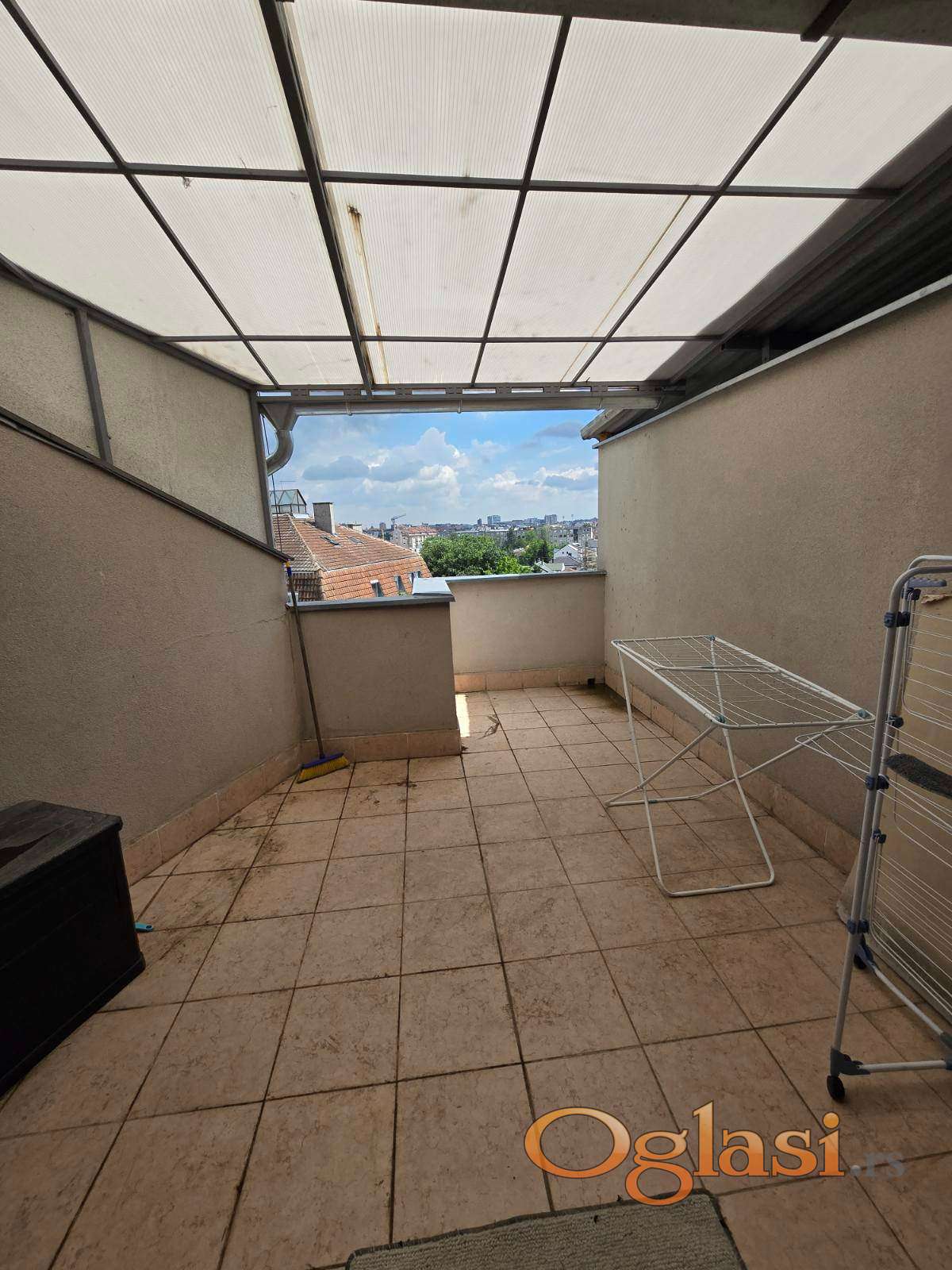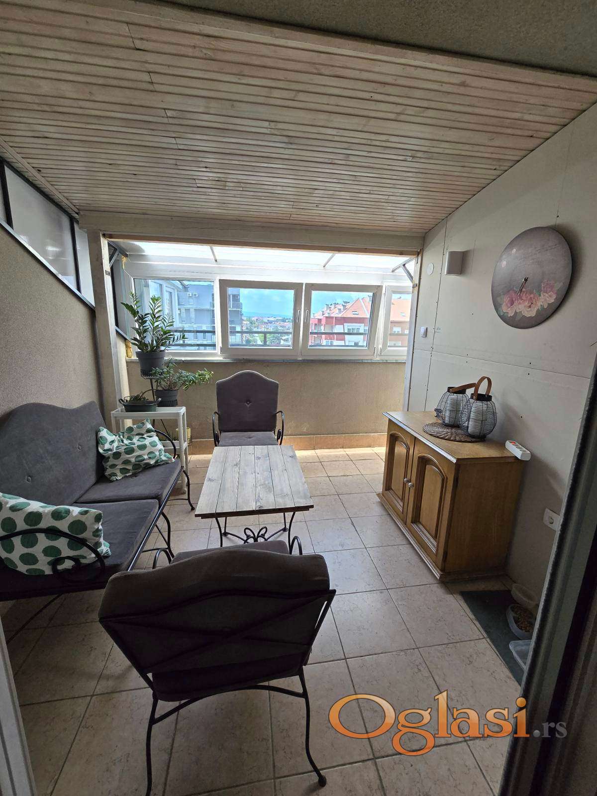 Jedna terasa zatvorena PVC stolarijom sa pogledom na Bulevar Evrope, druga otvorena sa pogledom na dvorište.