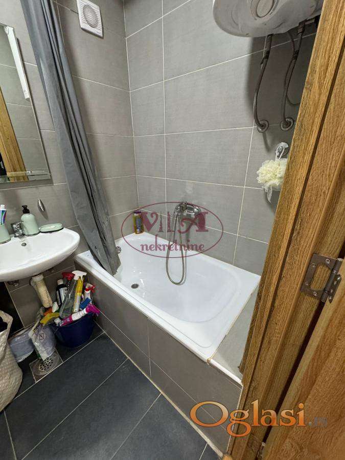 Prodaje se lep i svetao jednoiposoban stan na dobroj lokaciji. Stan je kompletno opremljen, poseduje sve od bele tehnike, tv, ves masina, klima, a takodje poseduje i veliku terasu sa lepim pogledom na grad. Stan se nalazi na 3. spratu u zgradi bez lifta. Kontakt tel. 0646586099