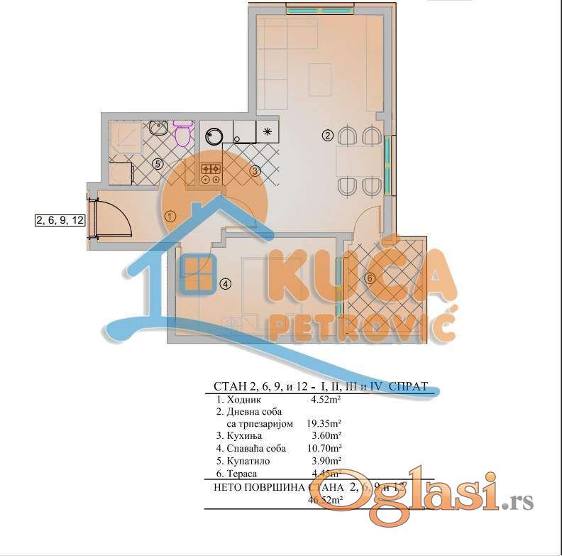 Na prodaju prelep stan u novogradnji, na odličnoj lokaciji, u blizini Pantalejske crkve. Izvanredan za porodično stanovanje i izdavanje. Nalazi se u manjoj stambenoj zgradi spratnosti po+p+4. Po strukturi je jednoiposoban, projektovane površine 46,52m2, sa funkcionalnim rasporedom prostorija. Dostupan je na trećem spratu, u izuzetno kvalitetnoj manjoj novogradnji. Stan se sastoji od ulaznog hodnika, dnevne sobe sa kuhinjom i trpezarijom, lođe, spavaće sobe i kupatila. U svakoj stambenoj jedinici biće postavljena prvoklasna špansko- turska keramika u kupatilu i kuhinji, sa kompletnom sanitarnom opremom, u svim prostorijama biće najkvalitetniji tarket-parket (12cm), prvoklasna šestokomorna PVC stolarija sa ALU roletnama (solar guard stakla) i instalirana inverter klima. Planirana je ugradnja kompletne instalacije za etažno grejanje, sa mogućnošću naknadne ugradnje kotla i radijatora uz doplatu po izboru kupca. Ispred zgrade je predviđeno pripadajuće parking mesto za svaki stan, koje se posebno naplaćuje. Pripadajuće ostave predviđene su u suterenu zgrade. Objekat je u fazi izgradnje po najnovijim standardima, korišćeni su najkvalitetniji materijali. Završetak radova se očekuje do kraja 2026.godine. Kupci prvog stana imaju pravo na povraćaj pdv-a. Ovo je samo deo naše ponude, ovaj kao i druge stanove sa većim brojem fotografija možete pogledati na našem sajtu.
