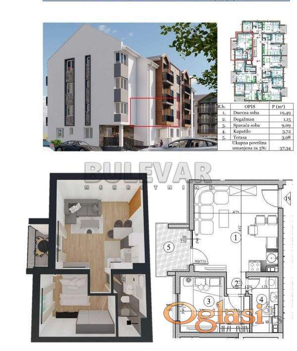 Predivan pogled iz svakog stana na obližnje planine na 100m od obale reke.Stan od 37,34 m2 se nalazi na drugom spratu, lamela 1.