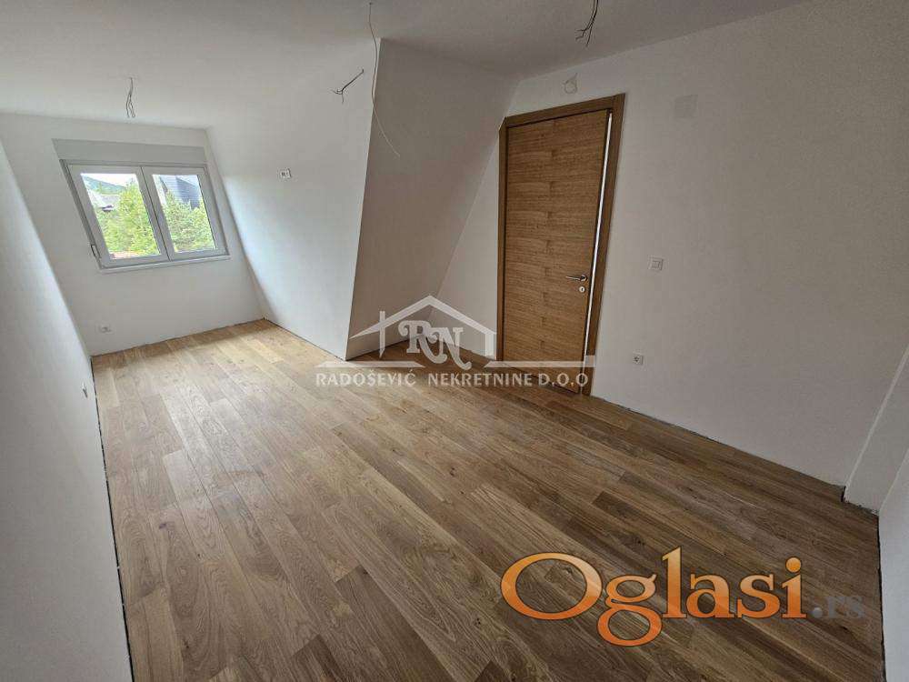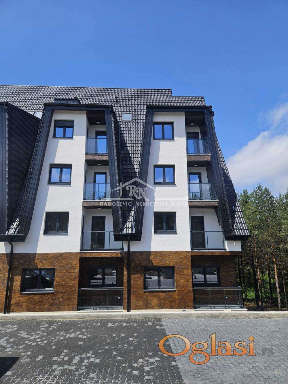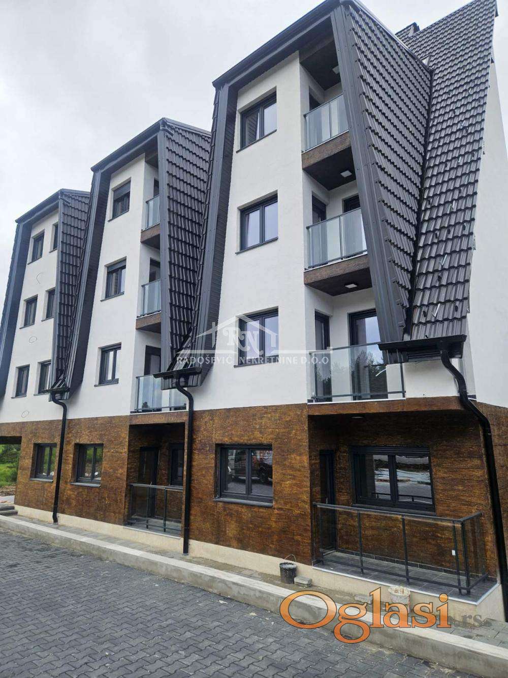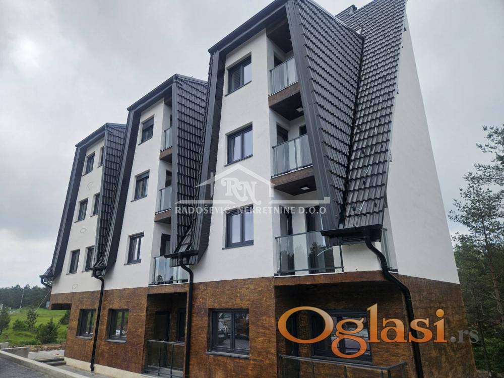 U potpuno novom, ambijentalno uklopljenom apartmansko-poslovnom objektu, nudimo vam odmah useljiv apartman sa građevinskom dozvolom, na 150m udaljen od hotela "CRNI VRH", u blizini maksija i autobuske stanice. Objekat je obezbeđen liftom a apartman je na trećoj etaži od ukupno četiri etaže. Apartman se sastoji od dnevne sobe u okviru koje je kuhinja i trpezarija, spavaće sobe, kupatila i lođe sa koje se prostire prelep pogled. Apartman je obezbeđen klima uređajem, u kuhinji i kupatilu je vrhunska keramika tipa "Porcelanosa" i u svakoj sobi je električni radijator. Kupac prve nekretnine ima pravo na povraćaj PDV-a u iznosu od 10% od cene apartmana. Kontakt Dragoljub Burdžić 063/575-359 Agencijska provizija 2%