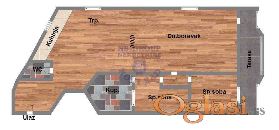 *Sastoji se od dnevnog boravka sa kuhinjom, dve komforne spavaće sobe, dva kupatila i terase. Stan je kompletno renoviran, opremljen, dvostrano orijentisan i veoma je svetao. Za više informacija i gledanje ovog stana pozovite naše agente prodaje.