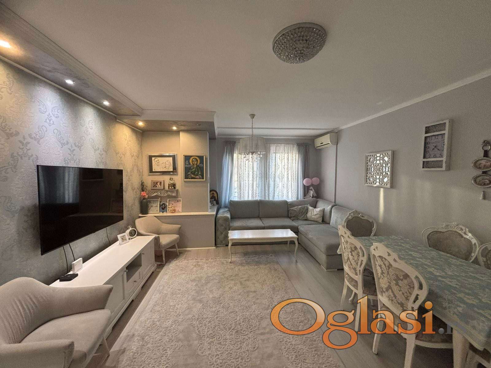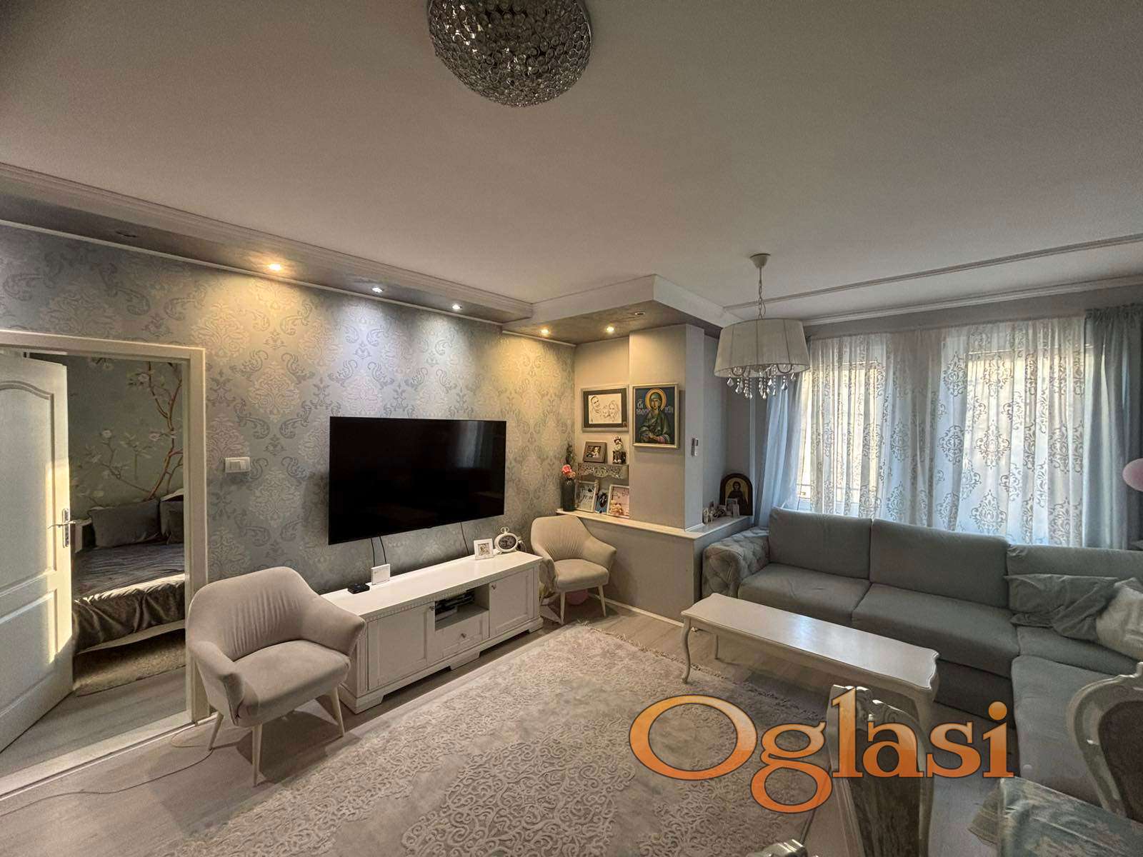 Prodaje se kompletno namešten i izuzetno osvetljen trosoban stan, površine 70 m², koji uključuje prostranu dnevnu sobu, hodnik, spavaću sobu i dečiju sobu.