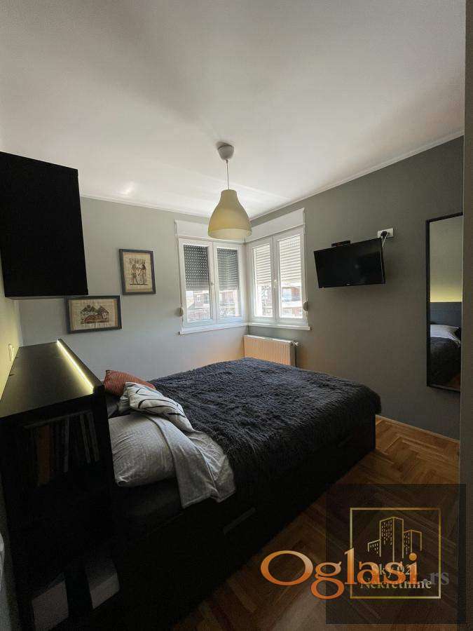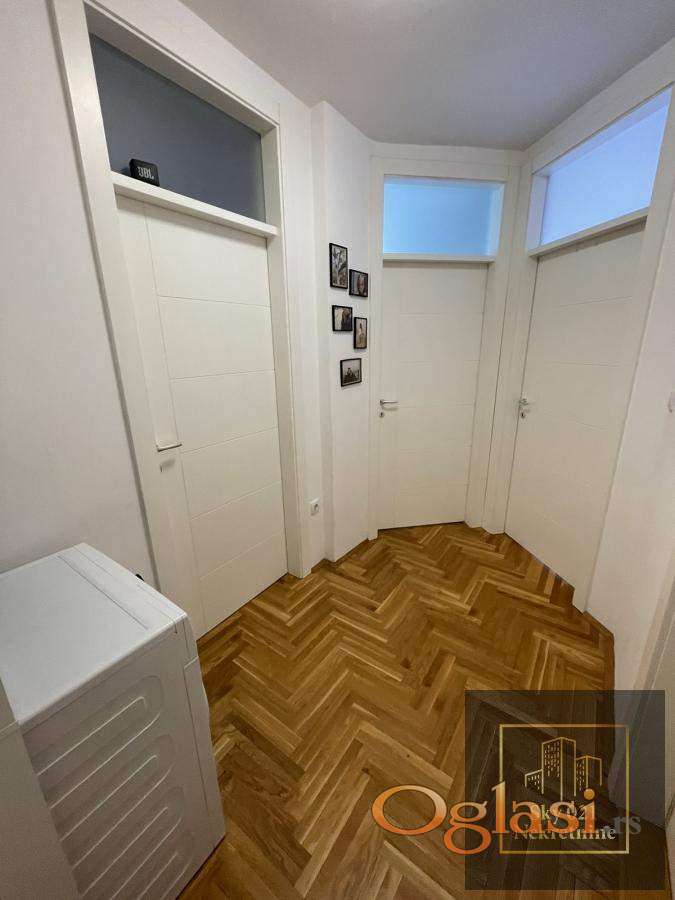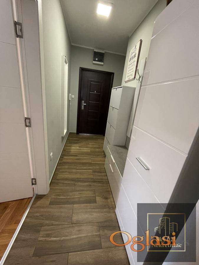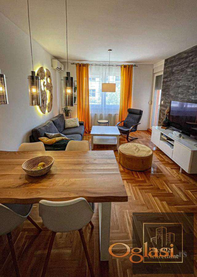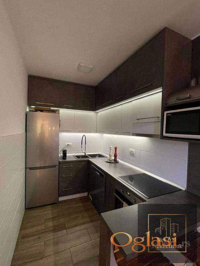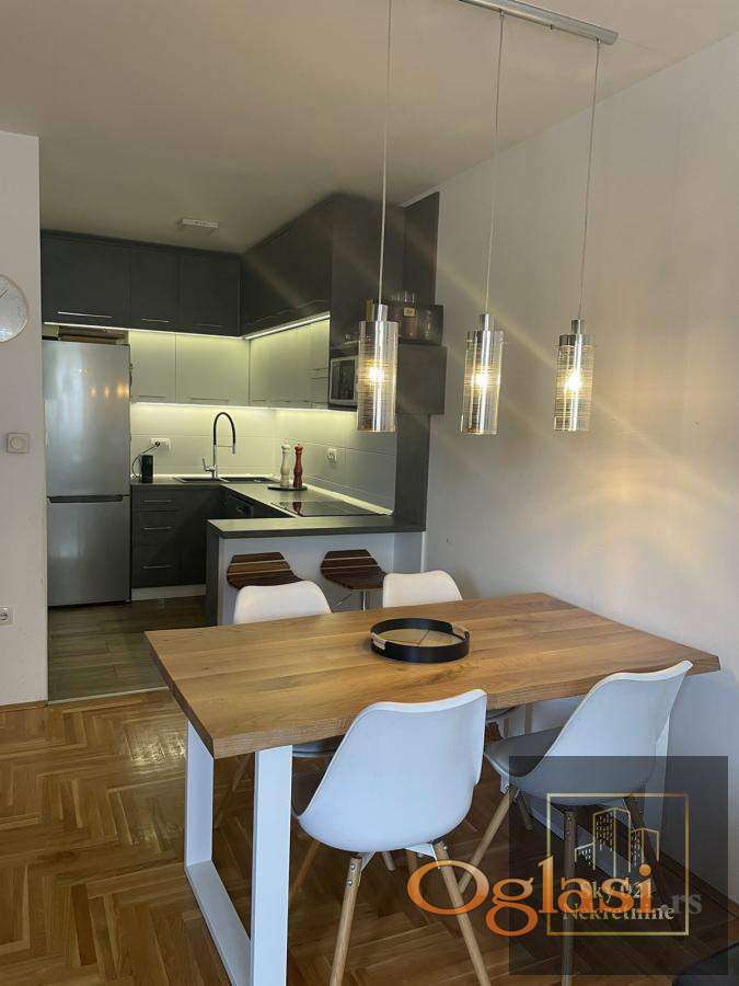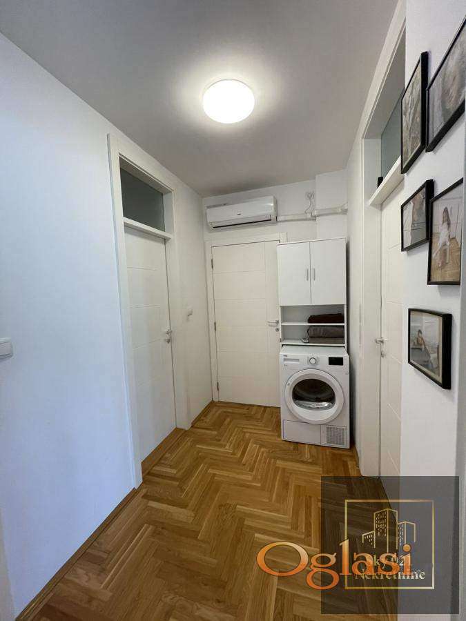 Stan je kompletno namešten modernim, pažljivo odabranim nameštajem i vrhunskim materijalima.