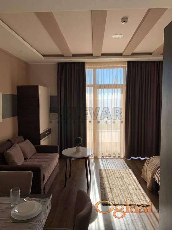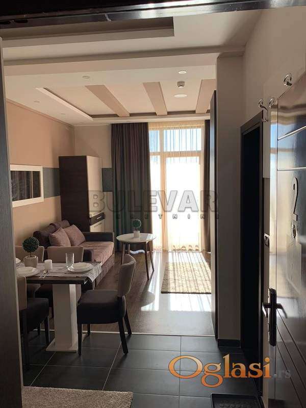 Na prodaju Studio - Apartman na Kopaoniku. Površine 28 m2, u prizemlju. Apartman ima pogled prema planinama Sastoji od ulaznog hodnika otvorenog tipa, višenamenske sobe sa trpezarijom i kuhinjom, kupatila i terase. Prodaje se sa novim nekorišcenim nameštajem, tehnikom i posudjem. Na podu je parket, stolarija je aluminijumska, grejanje je na struju, grejalica i klima (izdvojen strujomer), parking je ispred objekta za vlasnike apartmana. Apartman poseduje kablovsku TV i Wifi. U samom objektu se nalazi najnoviji wellnes i spa centar, zatvoreni bazen, restoran, dečija igraonica, skijašnica i ostali prateći sadržaji koji su omogućeni na korišćenje budućim vlasnicima, kao i njihovim gostima uz popuste od 20 do 50%. U neposrednoj blizini objekta se nalaze i otvoreni bazen, prodavnice, autobuska stanica, kao i više ugostiteljskih objekata i ski bus koji vozi do centra Kopaonika. Apartman je odmah useljiv i nisu potrebna nikakva dodatna ulaganja. Izdavanje je moguće u samostalnoj režiji, kao i u saradnji sa hotelskim menadžmentom. Idealna investicija za brz povrat uloženih sredstava. Recepcija u samom objektu, koja je na raspolaganju tokom cele godine vlasnicima i gostima. Uknjižen, sa upotrebnom dozvolom, vlasništvo 1/1. Za više informacija stojimo Vam na raspolaganju.