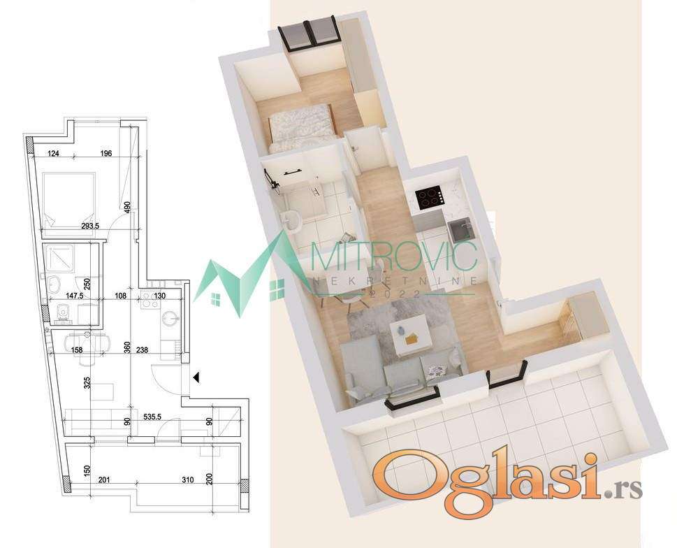 Prodaje se jednoiposoban stan u izgradnji na odličnoj lokaciji. .Stan se nalazi na IV spratu. Sastoji se od dnevne sobe sa kuhinjom i trpezarijskim delom, spavaće sobe, kupatila i terase. U oglašenu cenu uračunata je posrednička naknada u iznosu od 3%.