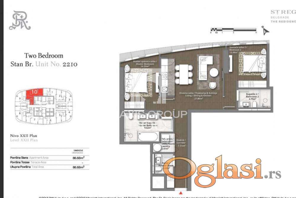 stan 3.0 u Kuli St. Regis, Beograd na vodi-bez provizije od 86.68 m2 ID#1398