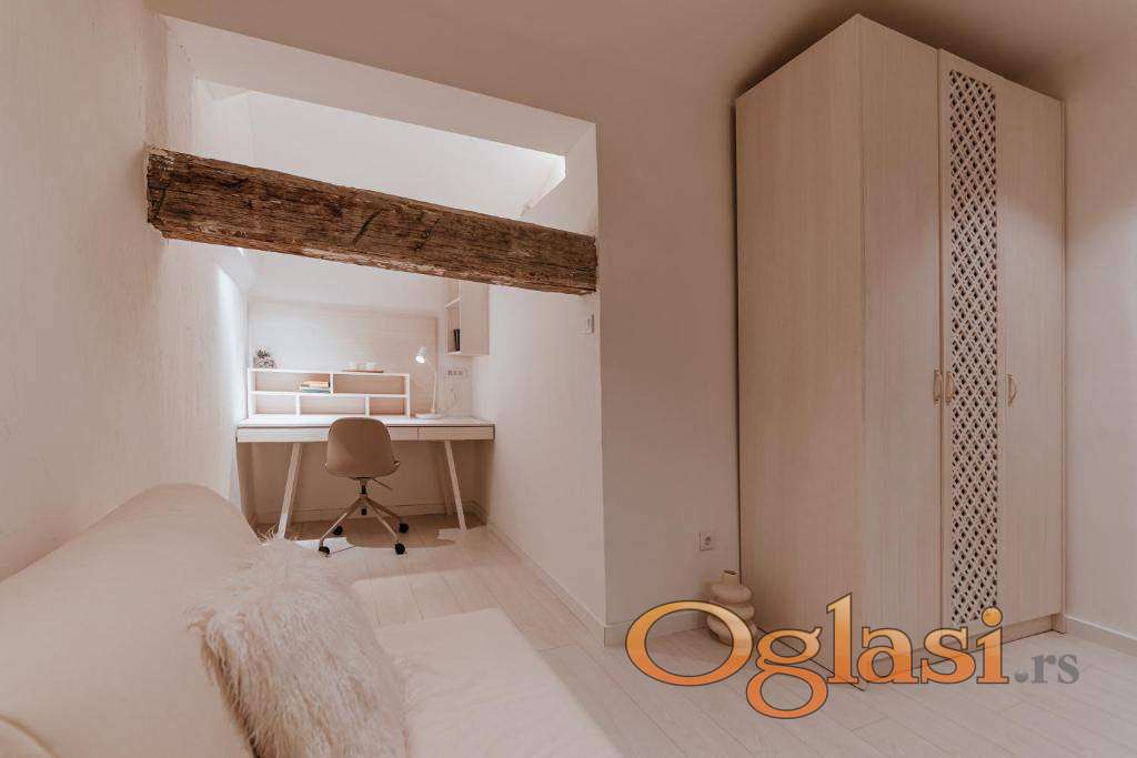 Stan skoro renoviran, izdaje se preko Booking kao stan na dan, ima realno 35 ali je upisano 32, mogucnost ponovnog uvodjenja cajne kuhinje, trenutno ima samo mali frizider. Javni parking nije u zoni, uvek dostupan.