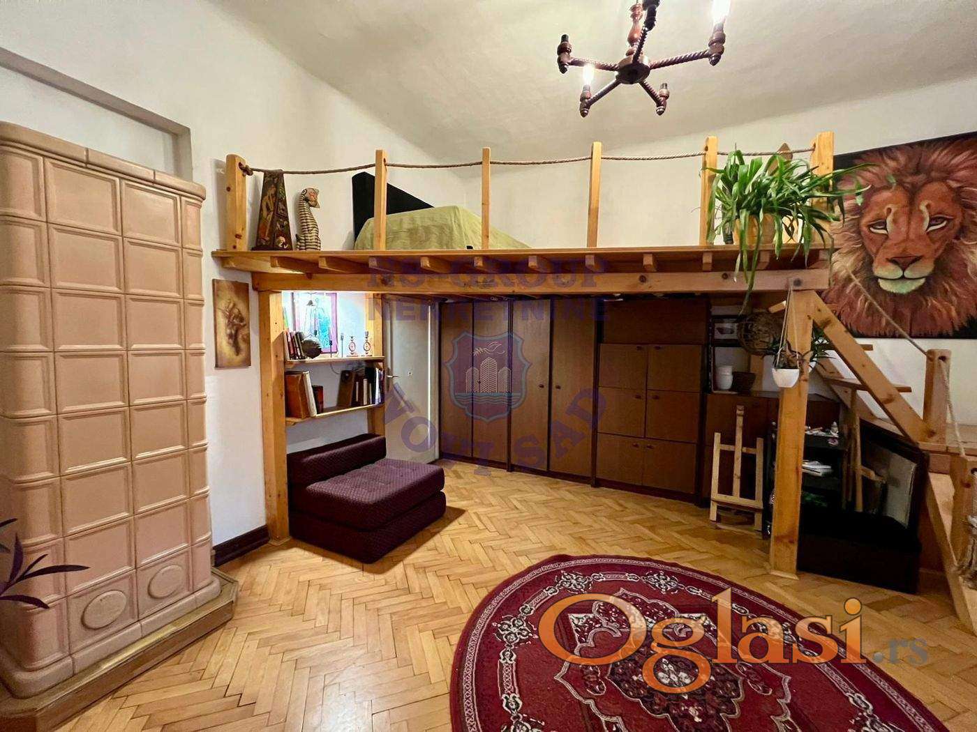 Nekretnina se nalazi na odličnoj lokaciji, u neposrednoj blizini Beogradske kapije i Varadinskog mosta. Komforan stan koji se sastoji od dnevnog boravka (24.7m2), sobe (23.2m2 plus galerija 8.26m2), kuhinje (10m2), kupatila (2.9m2) i hodnika (10m2). Podrum ima oko 5m2, a garaža oko 12m2 koja se koristi kao šupa. Stan se nalazi u urednom i mirnom dvorištu koje deli sa još pet stanova. Postoji mogućnost proširenja stambenog prostora na potkrovlje, što su pojedini stanari već iskoristili. Pristup dvorištu imaju isključivo stanari zgrade. Grejanje je rešeno putem dve kaljeve peći na drva.Za više informacija kontaktirajte naše agente