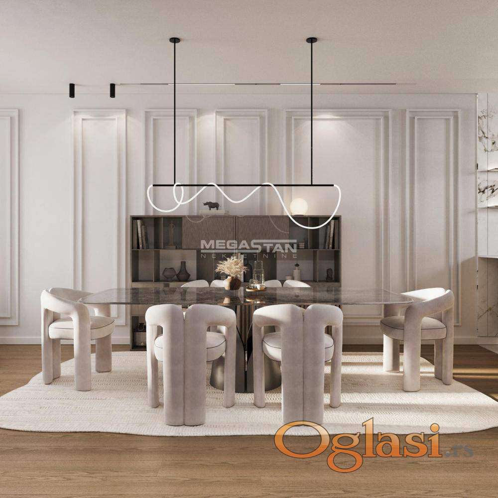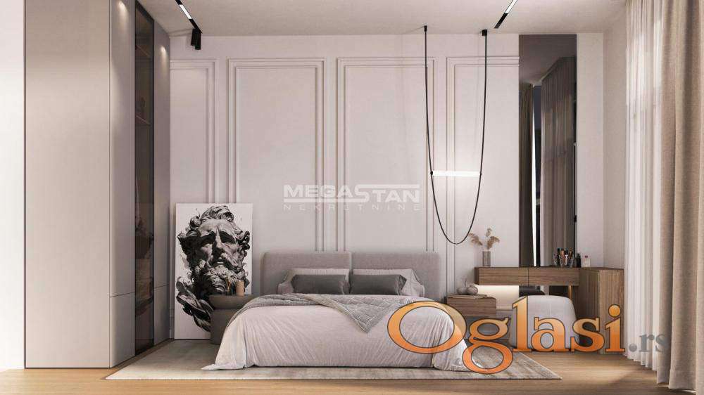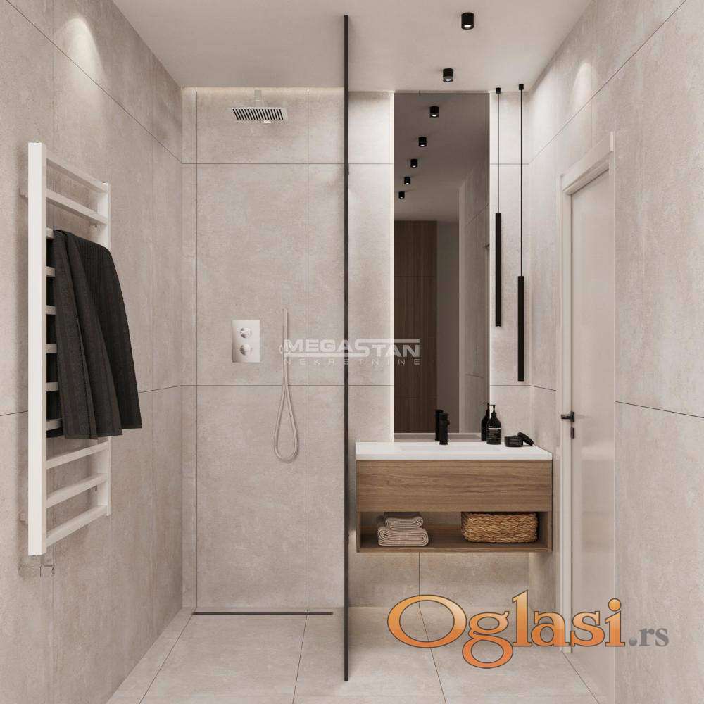 Svaki stan nudi maksimalnu funkcionalnost i osećaj privatnosti uz detalje koji prave razliku: cg sa kalorimetrima, veliki prozori od aluminijuma, prirpdno osvetljenje tokom celog dana, troslojni hrastov parket velikih dimenzija 1. klase, brendirane sanitarije i keramika renomiranih proizvođača, video interfon i kamera, lift, garažna mesta i pažljivo uređene zajedničke prostorije deo su standarda ove zgrade.