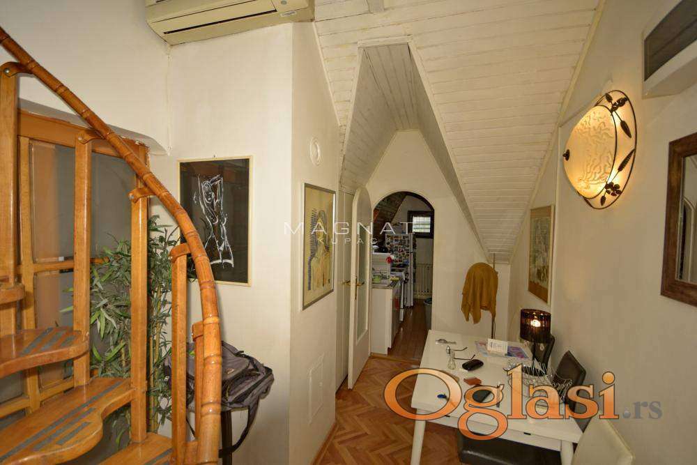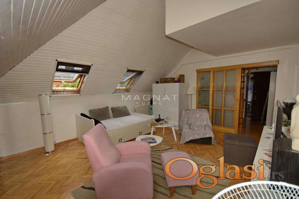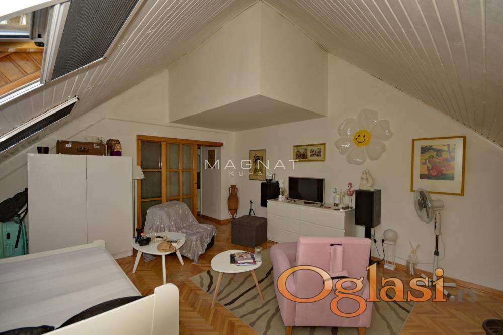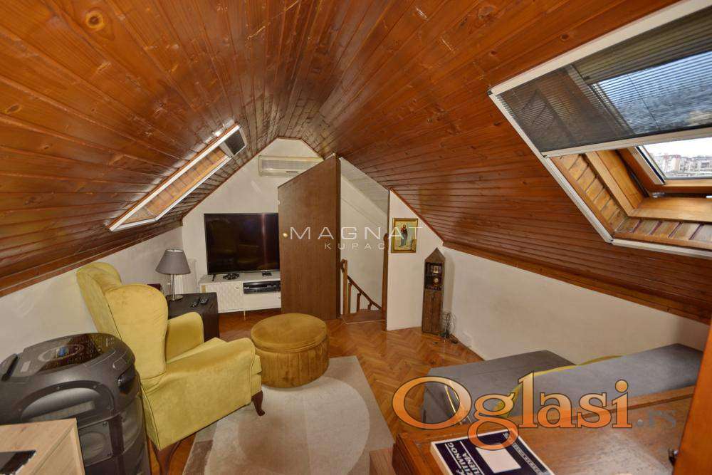 U mirnom delu Durmitorske, u urednoj zgradi sa liftom, na sedmom poslednjem spratu prodaje se vrlo povoljno renoviran stan u potkrovlju. Stan je izuzetno svetao. Od prostorija ima dve sobe, kuhinju, kupatilo, predsoblje. Stan je uknjižen, mogu i kreditni kupci. U osnovi stan ima 56m2, ali je uknjižen na 48m2, pa se kao takav po zakonu prodaje. Nalazi se odmah pored Beograda na vodi i tržnog centra Galerija. U neposrednoj blizini su svi mogući sadržaji, kafići, restorani, vrhunska snabdevenost, kao i škole, obdaništa, fakulteti i Palata pravde. Izvrsna lokacija za život i najbolja povezanost sa svim delovima grada, linije gradskog prevoza 46, 17, 18, 56, 23, 37. čine ovaj stan vrlo jedinstvenim u ponudi.