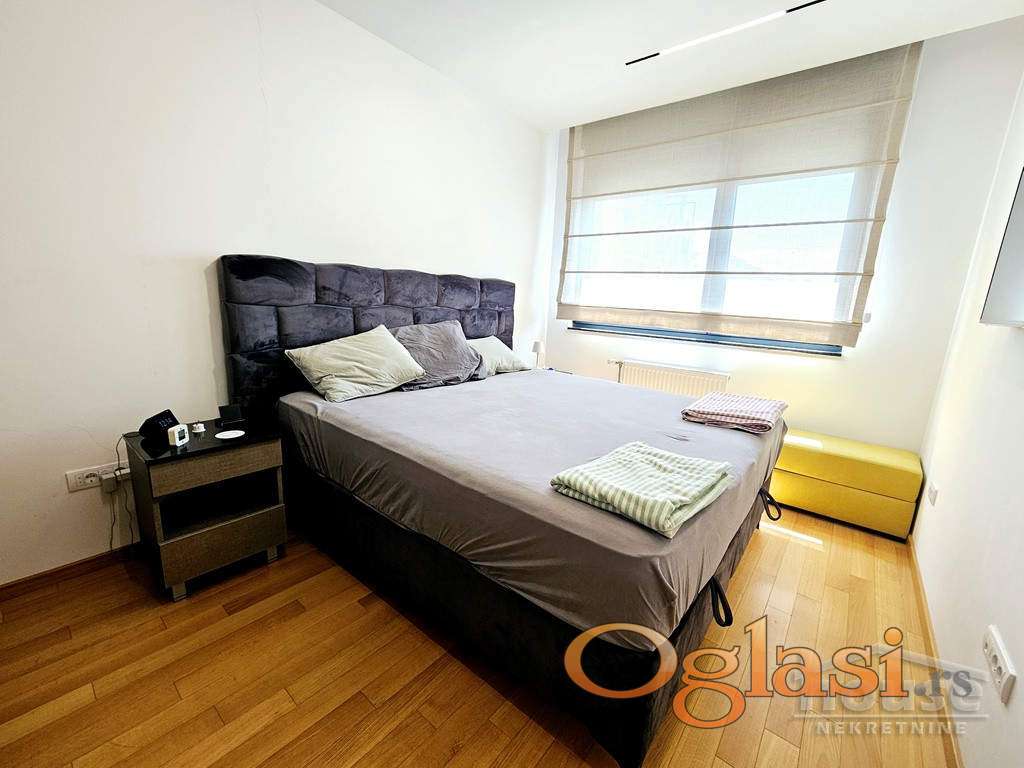 Agencijska oznaka 1063828. CENA sa uračunatom agencijskom provizijom od 3%. Prodaje se kompletno namešten - sve je već u izraženoj ceni. Izuzetan stan u ponudi. U stanu je tehnologija vrhunskog nivoa, opremljen modernim smart home sistemom. Od električnih podizača roletni, klima uređajem 24, spuštenim plafonima sa led osvetljenje koje je modularno, do kuhinje sa radnim pločama od kvarca. Kvalitetna novija gradnja. Uz stan se prodaje i garažno mesto, kao i ostava od 4m2 koje spadaju u posebnu ponudu.  Stan se sastoji iz dnevnog boravka, dve spavaće sobe, kuhinje, kupatila i terase. Dvorišno orijentisan. Za više informacija pozovite: 064/823-6605 Atina.