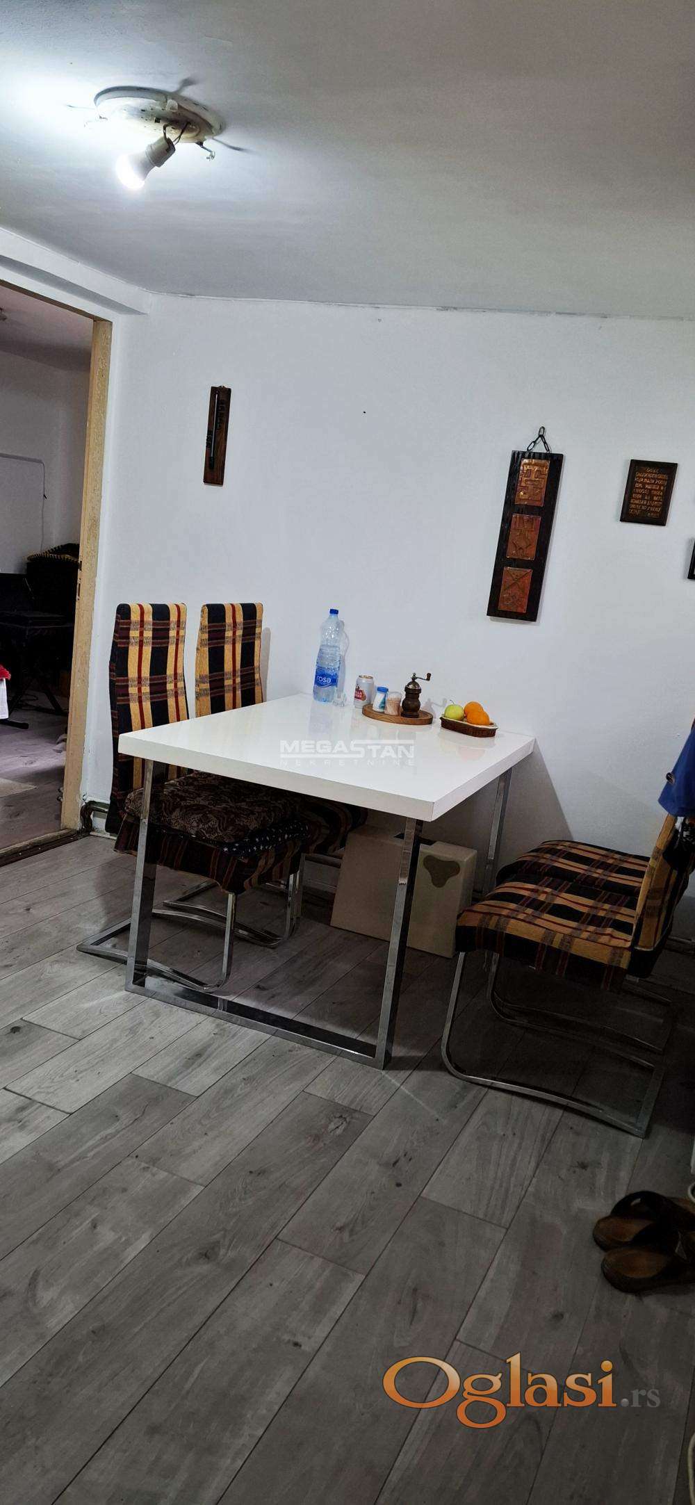 Čvrsta gradnja, krov biber crep i lim, ploča delom beton, delom karatavan. Pvc stoalrija, klima.