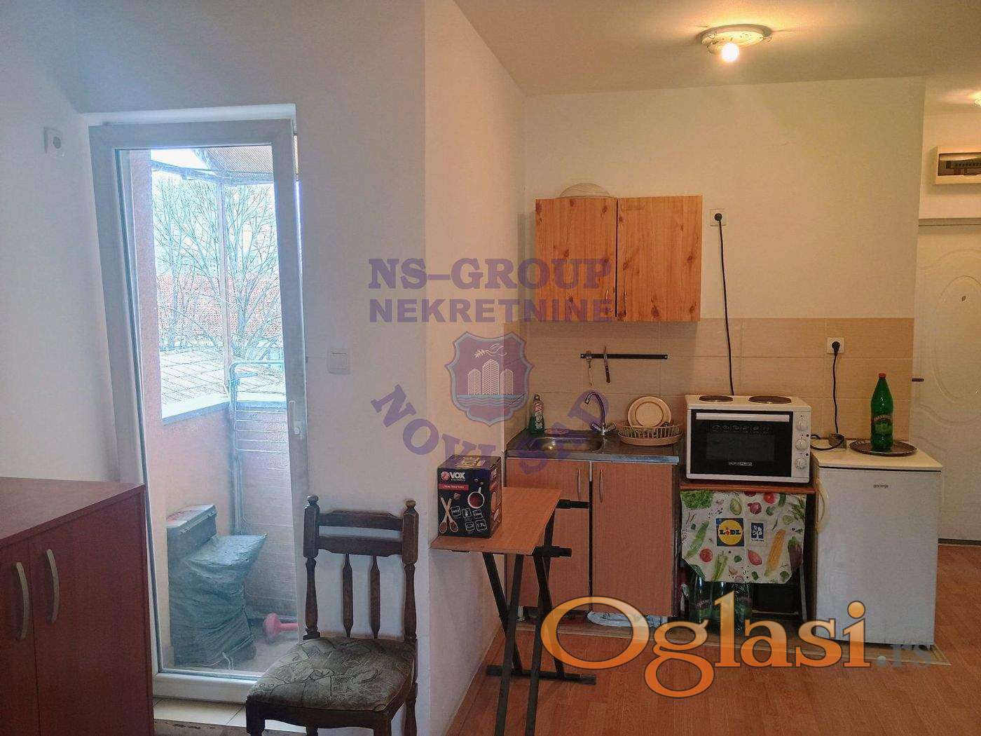 Garsonjera na drugom spratu sa terasom. Nalazi se u neposrednoj blizini Bulevara patrijarha Pavla, useljena u julu 2016. godine. U ceni su samo kuhinjski elementi. Standardna oprema stana. Za vise informacija kontaktirajte nase agente