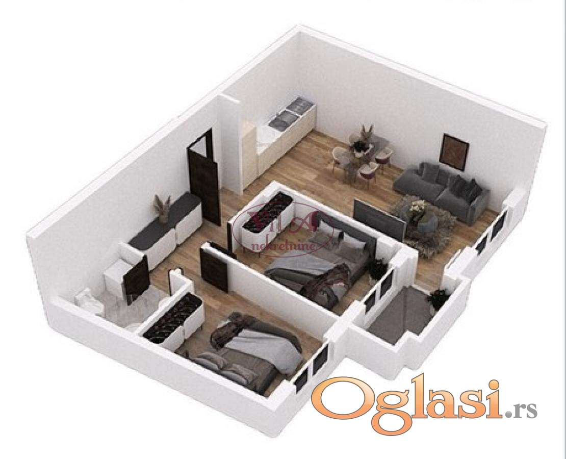 Prodaje se dvoiposoban stan u izgradnji u lepom delu Telepa. Stan ima povrat PDV-a za kupce prvog od 10%. Investitor je renomiran, pouzdan i sa tradicijom visoko kvalitetne gradnje objekata.Stan ima lep raspored prostorija, ulično je orijentisan i nalazi se na - 10 minuta vožnje od centra Novog Sada. Stan ima dve spavaće sobe, kupatilo i dnevnu sobu koja je povezana sa kuhinjom, veliku lepu terasu na koju se izlazi iz dnevne sobe. Zgrada ima ekonomično grejanje na gas sa kalorimetrima, italijansku keramiku.. Rok završetka zgrade i useljenje je u junu 2026.godine. Može se kupiti putem stambenog kredita. Mogućnost kupovine parking mesta u dvorištu zgrade po ceni od 11.500e i garažnog mesta po ceni od 22900. Vredi pogledati. Tel.065/424 55 77 i 064/6586099. Više fotografija na našem sajtu.