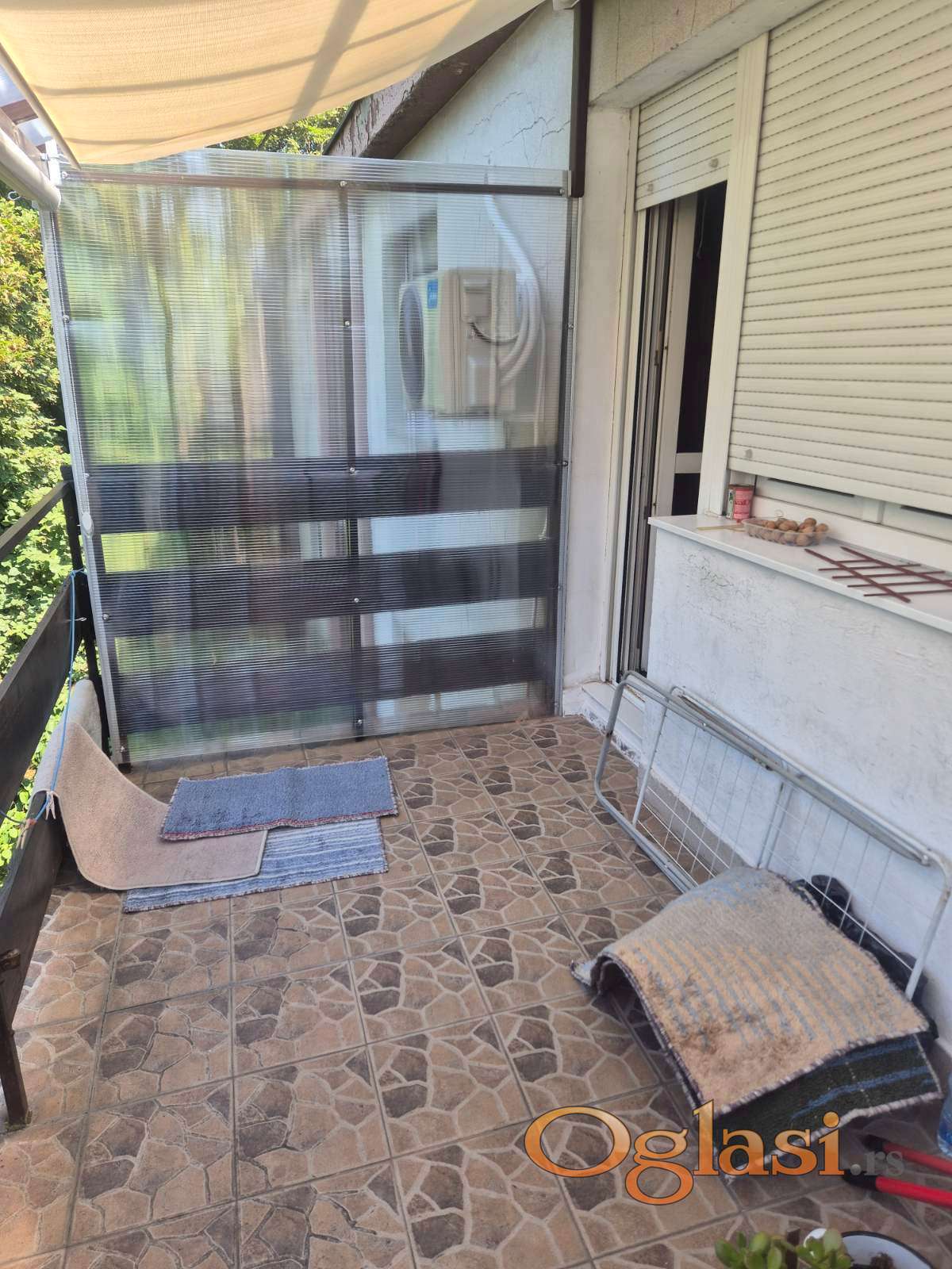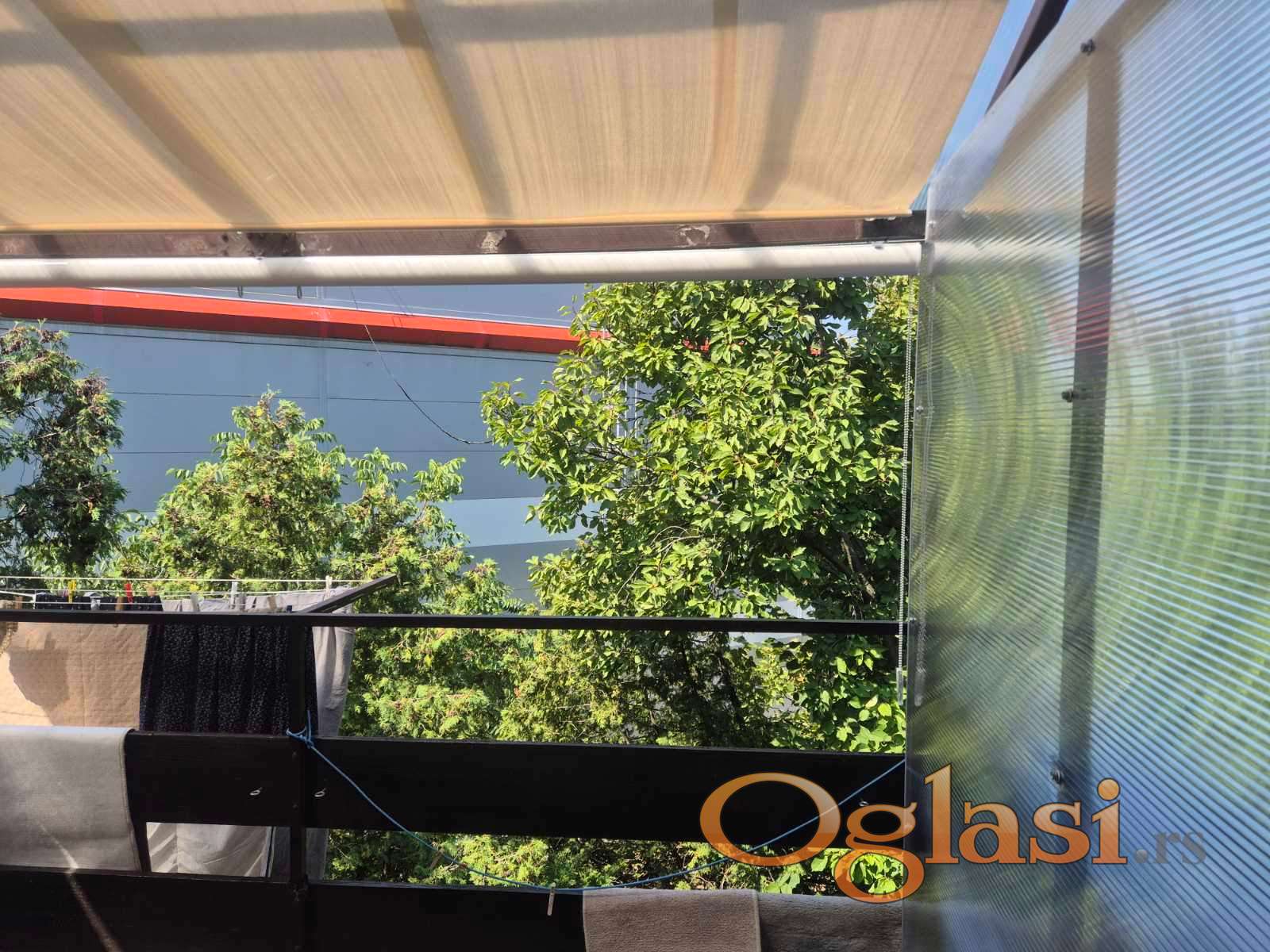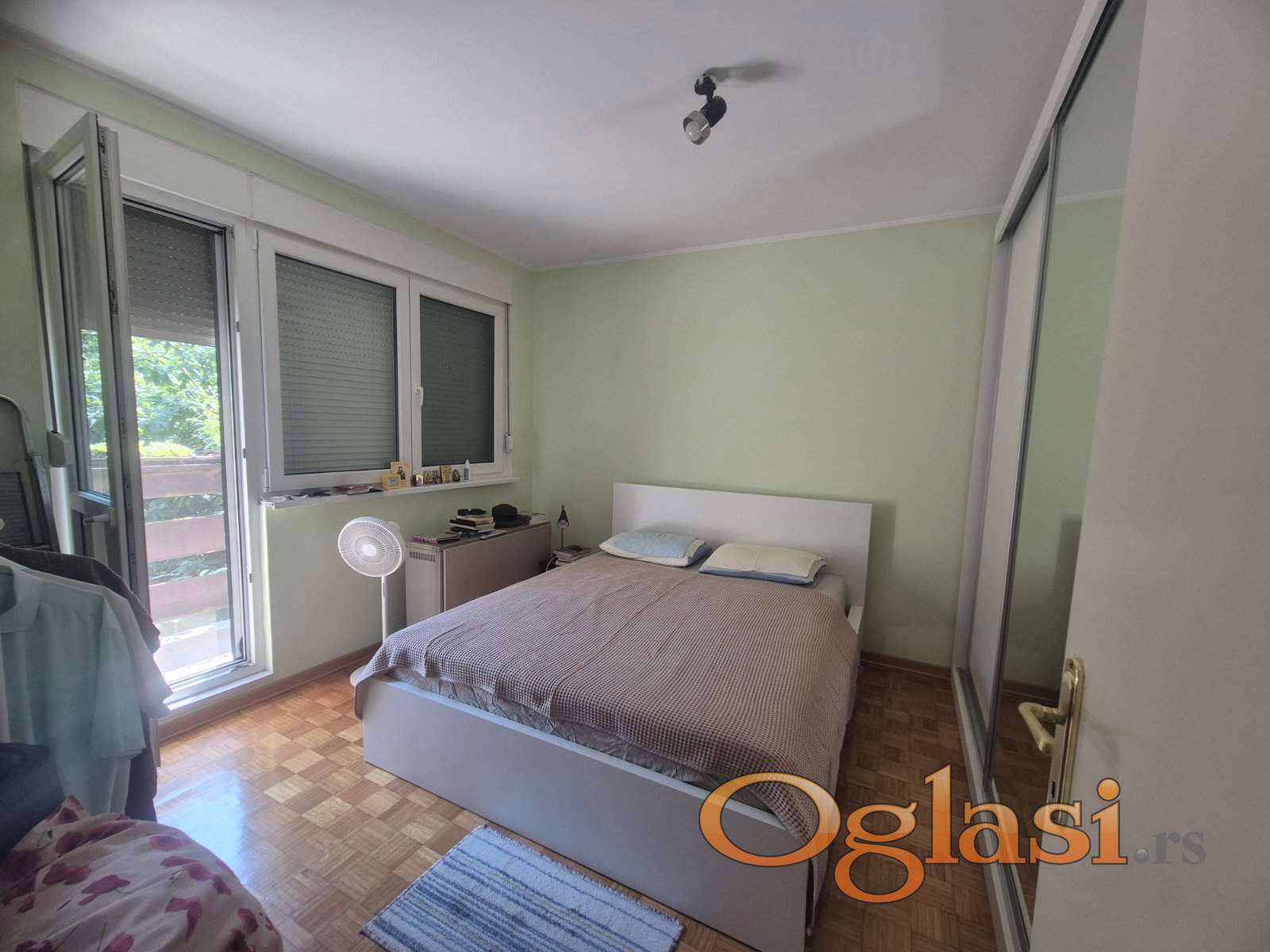 Dnevna soba ima izlaz na terasu ( stan raspolaže sa dve terase ) koja je veća u odnosu na onu do koje se dolazi iz jedne od spavaćih soba. Terasa je natkrivena tendom , zatvorena pleksiglasom tako da je u potpunosti pretvorena u kutak za odmor i uživanje. Spavaći blok je sa leve strane od ulaza i sastoji se od dve manje spavaće sobe, WC-a, kupatila i prostrane spavaće sobe koja ima izlaz na terasu.