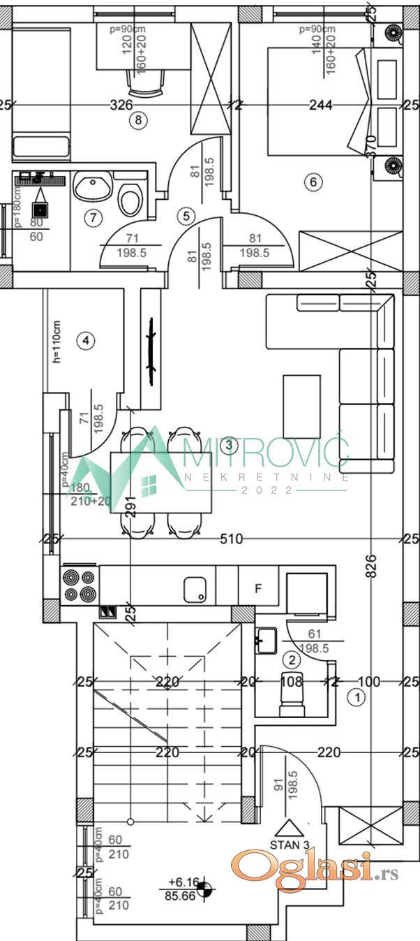 Na prodaju stanovi u novoj stambenoj zgradi u izgradnji, smeštenoj na mirnoj lokaciji na Adicama. Zgrada ima dva ulaza, a u svakom se nalazi po šest stambenih jedinica. U stanovima je ugrađeno podno grejanje na toplotne pumpe, tarkett parket, ugradni Geberit vodokotlići, španska keramika, staklena tuš kabina sa širokim podnim slivnikom. Objekat je obložen fasadom debljine 10 cm, a podovi imaju termo-zvučnu izolaciju debljine 3 cm. Ugrađena je šestokomorna PVC stolarija sa roletnama, sigurnosna ulazna vrata i staklene ograde na terasama. Kvalitetna i savremena gradnja, idealna za porodično stanovanje ili kao investicija. Rok završetka je Oktobar 2025. Postoji mogućnost kupovine parking mesta. Agencijska nadoknada iznosi 3% i uračunata je u cenu. Kontakt 0653136800