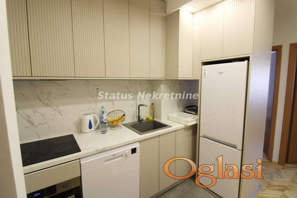 Stan je veoma lepo koncipiran poseduje komotan dnevni boravak sa kuhinjom i izlazom na terasu, 2 sobe, kupatilo.