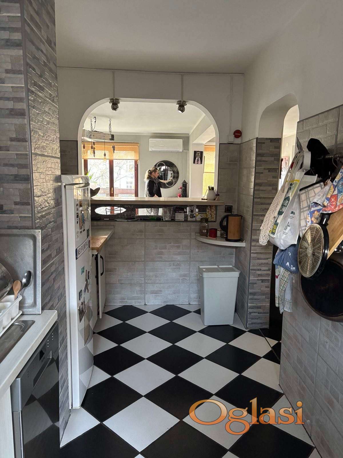 kompletno opremljenom kuhinjom sa izlazom na zastakljenu terasu, tri spavaće sobe, kupatilom gostinjskim toaletom, hodnikom, ostavom i terasom.