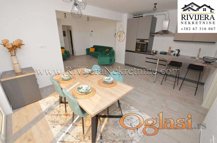 Raspored prostorija: dnevna soba sa kuhinjom, dvije spavace sobe, dva kupatila. Stan u neposrednoj blizini mora, cijena: 315.000 eura.