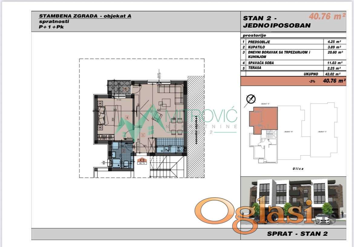 Na samoj granici sa Telepom, u blizini Bulevara Patrijarha Pavla, smeštena je zgrada sa malim brojem stanova, spratnosti pr+1+pk. Odličan kvalitet gradnje i opreme, modernog izgleda, sa portalima velikih profila. Grejanje na toplotne pumpe. Pored redovnih jednoiposobnih stanova od 38m2 i 41m2, manjeg dvoiposobnog stana od 49m2, na različitim etažama i orijentisanosti, dostupni su i garaža-stanovi od 26m2 do 31m2, takođe jednoiposobni.. Završetak gradnje jun 2026.godine. Izražena cena je sa pdv-om i agencijskom nadoknadom. Za dodatne informacije pozvati na broj 0621701819