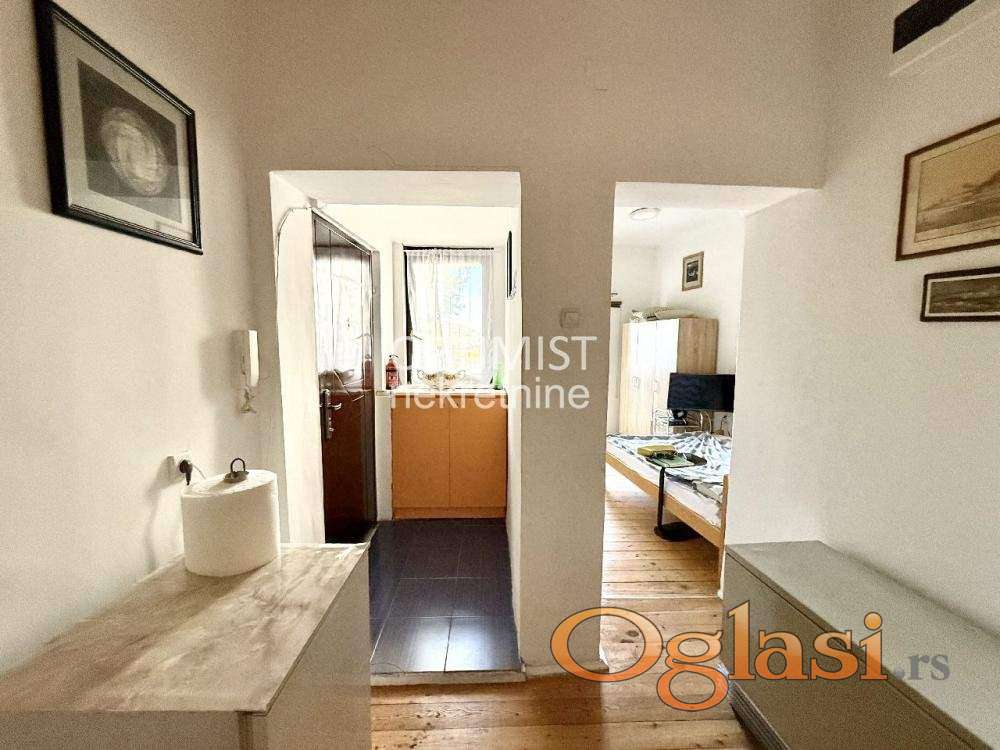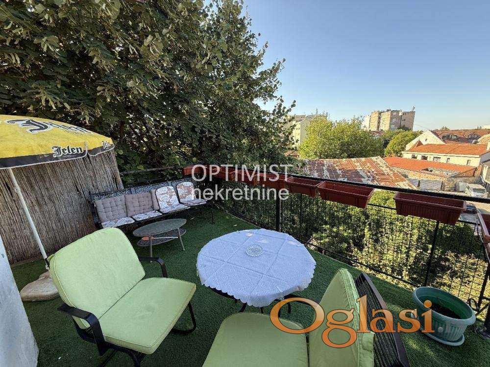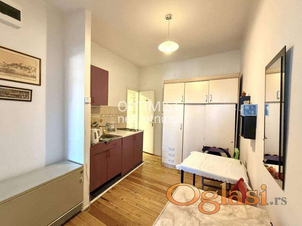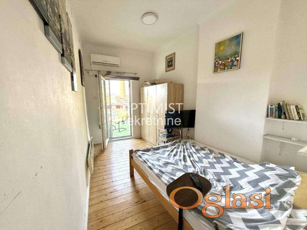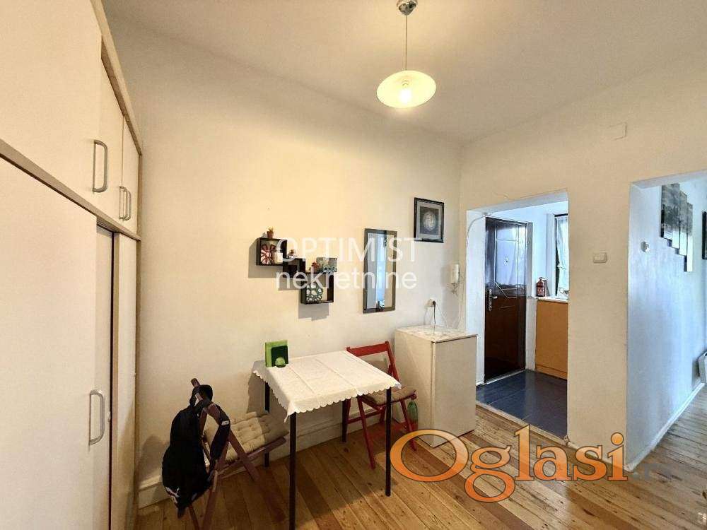 Optimist nekretnine vam predstavljaju stan od 43m² sa terasom, smešten na jedinstvenoj lokaciji u pešačkoj zoni u srcu Skadarlije. Uknjižena površina stana je 22m2 + legalizovana terasa od 21m2. Za ovaj stan je dobijena građevinska dozvola za nadogradnju sprata i formiranje dupleksa, što otvara posebnu investicionu priliku i čini ga još vrednijim. Ovakva ponuda na ovoj lokaciji predstavlja pravu retkost – spoj živopisnog ambijenta Skadarlije i potpune privatnosti. Stan je odličnog rasporeda i obuhvata: predsoblje, kuhinju sa trpezarijom, spavaću sobu, kupatilo i terasu. Udoban je, lako se održava i ima niske mesečne troškove, zbog čega je idealan kako za miran i praktičan život u centru Beograda, tako i za izdavanje. Hvala što ste izdvojili vreme za naš oglas! Agencijska provizija 2%