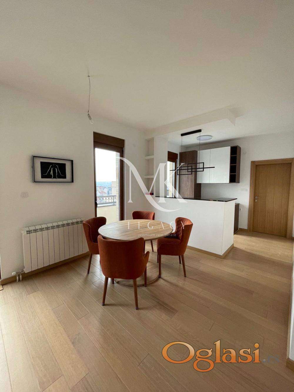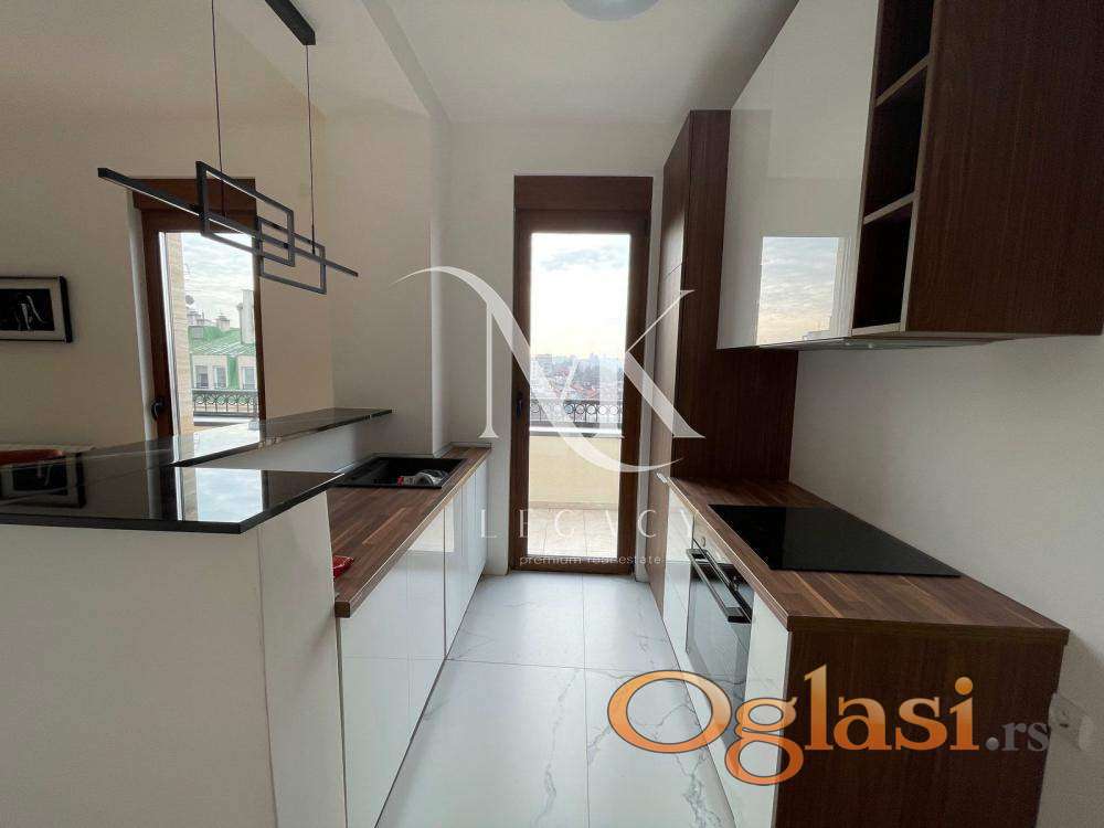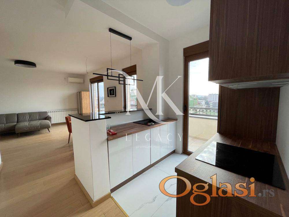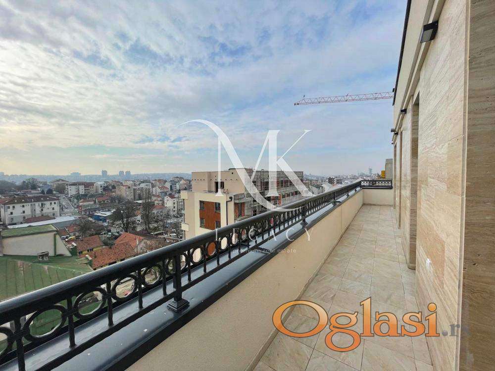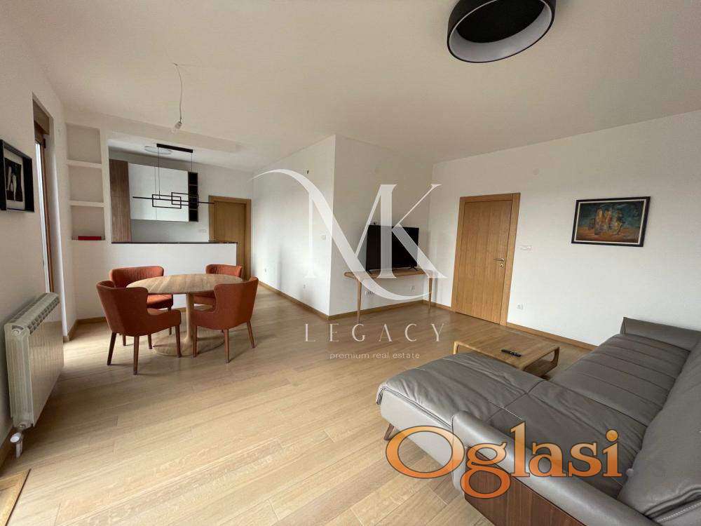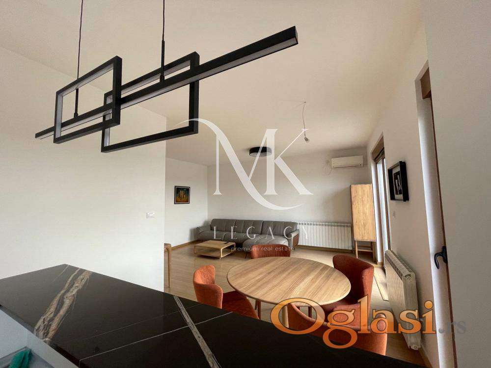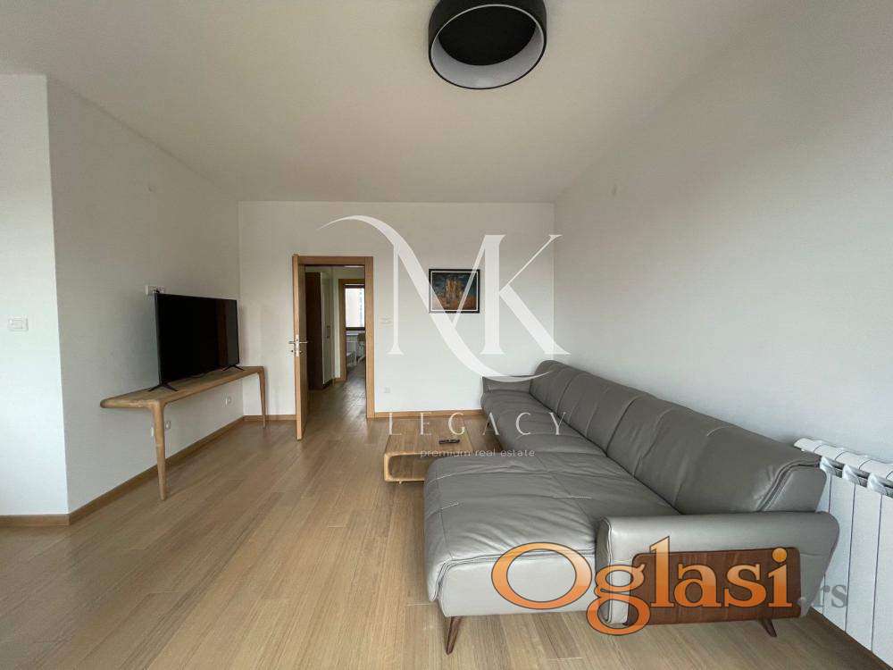 Stan se nalazi u zgradi vrhunskog kvaliteta gradnje. Centralno grejanje po potrošnji. Sastoji se od: ulaznog hodnika, prostrane dnevne sobe sa kuhinjom i trpezarijom, odvojenog spavaćeg bloka sa dve spavaće sobe i kupatilom, kao i master spavaće sobe sa sopstvenim kupatilom. Terasa se prostire celom dužinom stana.