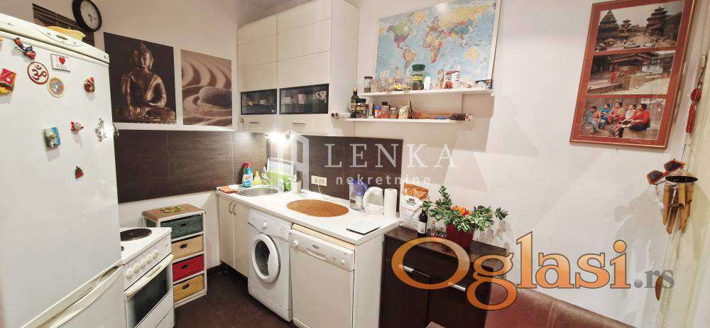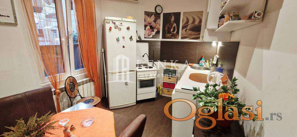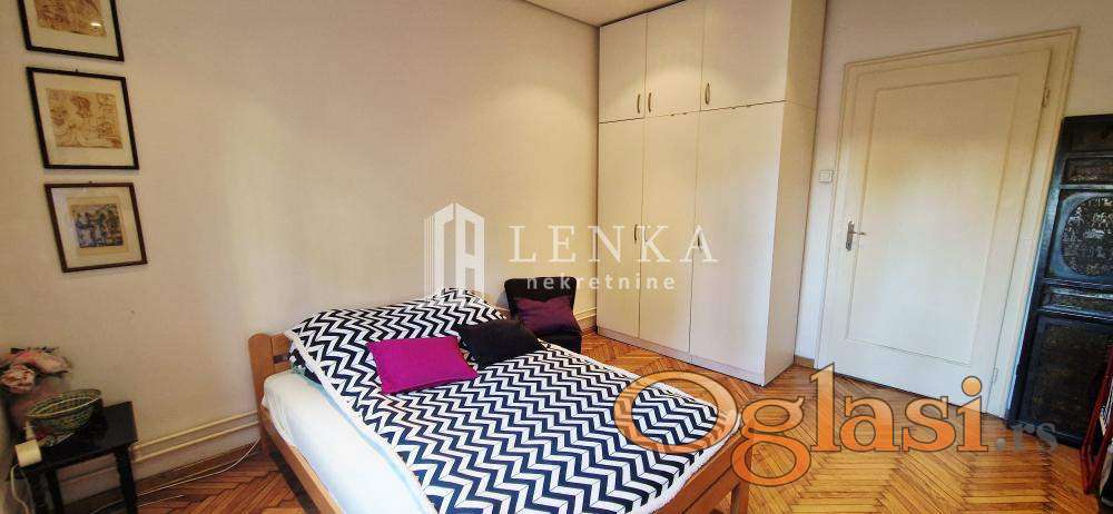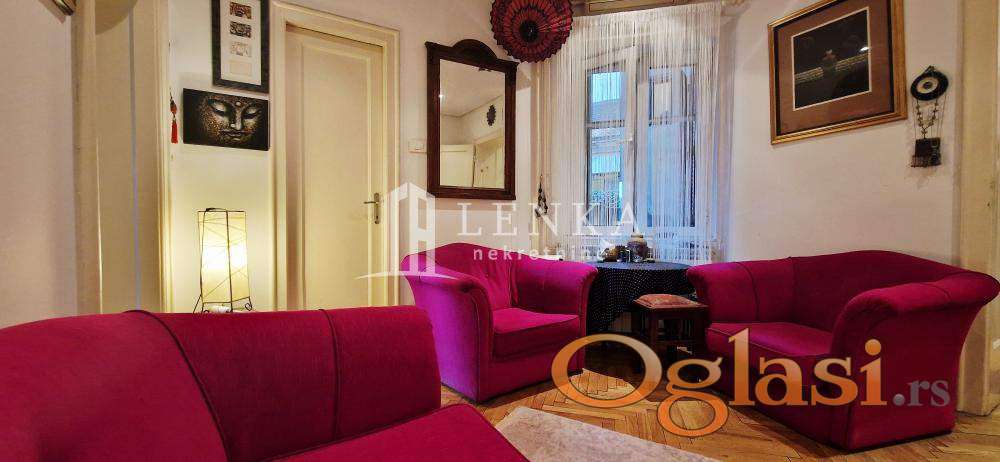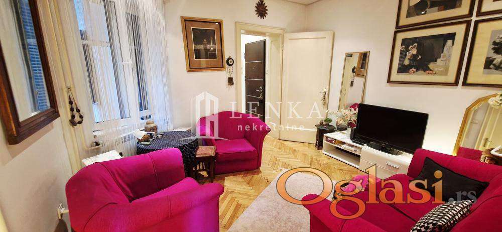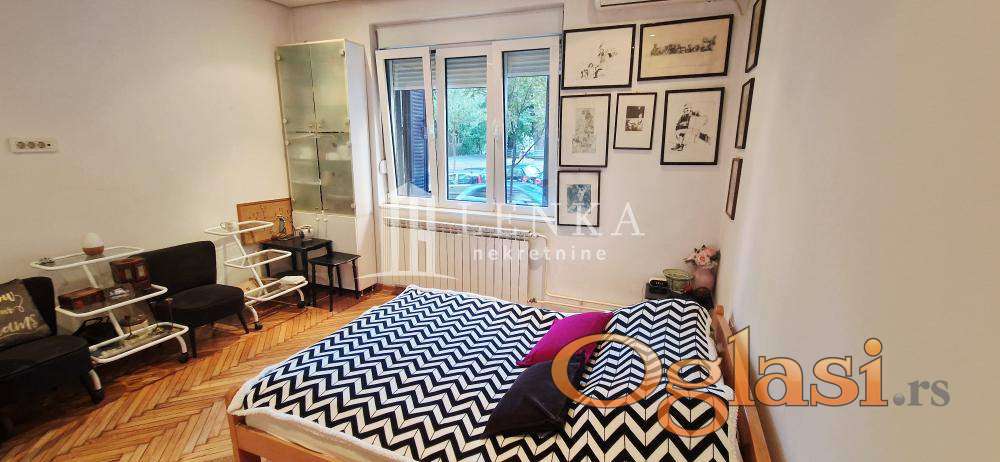 U najlepšem delu centralne gradske opštine Vračar u neposrednoj blizini Kalenić pijace , Doma zdravlja, vrtića, škole , prodavnica , sama mikrolokacija je odlično povezana sa drugim delovima grada i obiluje zelenilom. Predratna vila sa malim brojem stanara u kojoj se nalazi ovaj stan na visokom prizemlju . Na samom ulazu u ovaj predivan salonac vas dočekuju sigurnosna protivprovalna vrata Iz ulaznog hodnika se ulazi u sve prostorije komforni dnevni boravak koji je potpuno podređen maksimalnom uživanju, trpezarijski deo gde ukusi hrane i pića uz razgovor bude sva čula je povezan sa kuhinjom . Drugi deo stana čine spavaća soba sa plakarom. Kupatilo sa tuš kadom je izuzetno prostrano i funkcionalno. Velika prednost je biser ove nepokretnosti koja je ušuškana u zelenilu i izdvojena od ulične buke . Kompletno renovirana nepokretnost, alu stolarija, inokeramika, hrastov parket, struja, vodovod i odvod, nove sanitarije isalvine. U suterenu zgrade se nalazi pripadajuća ostava . Ispred same zgrade ima dosta parking mesta. Idealan stan koji pruža miran i konforan život. Kupac plaća proviziju 2%.
