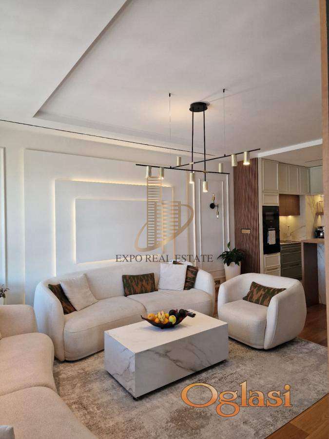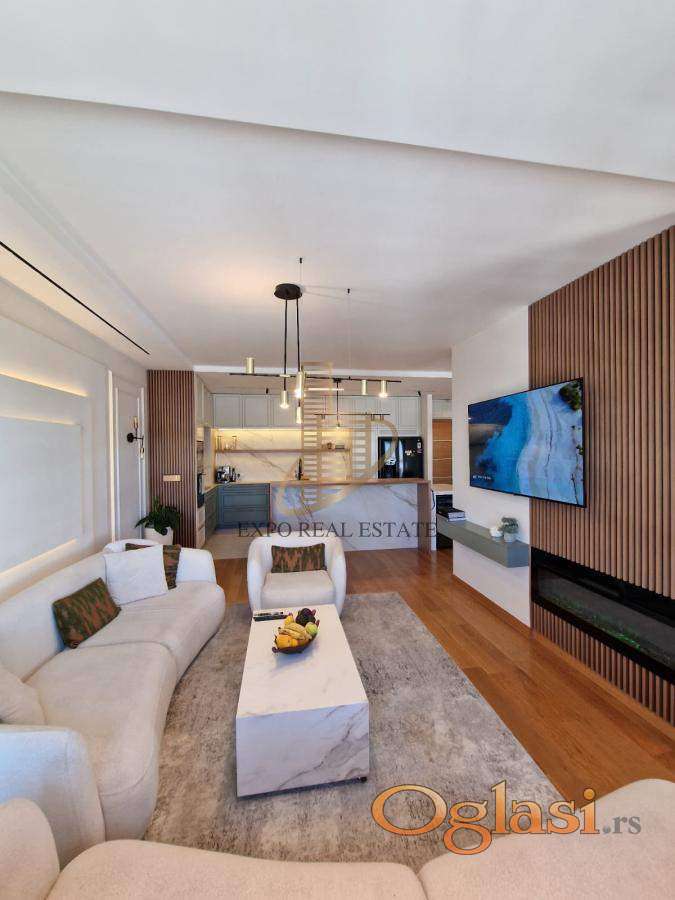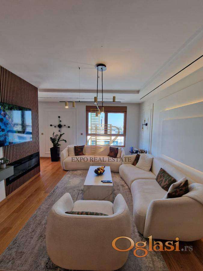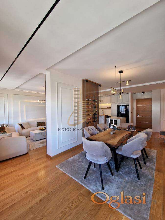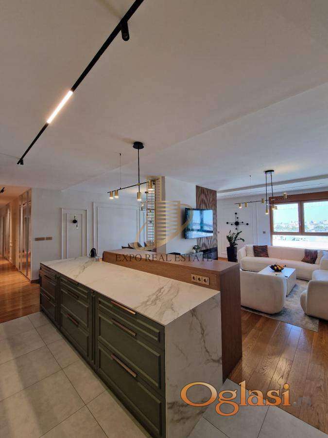 ◾ Opremljenost: stan je rađen po meri sa vrhunskim materijalima i luksuznim završnim obradama; prodaje se sa svim ugradnim elementima
