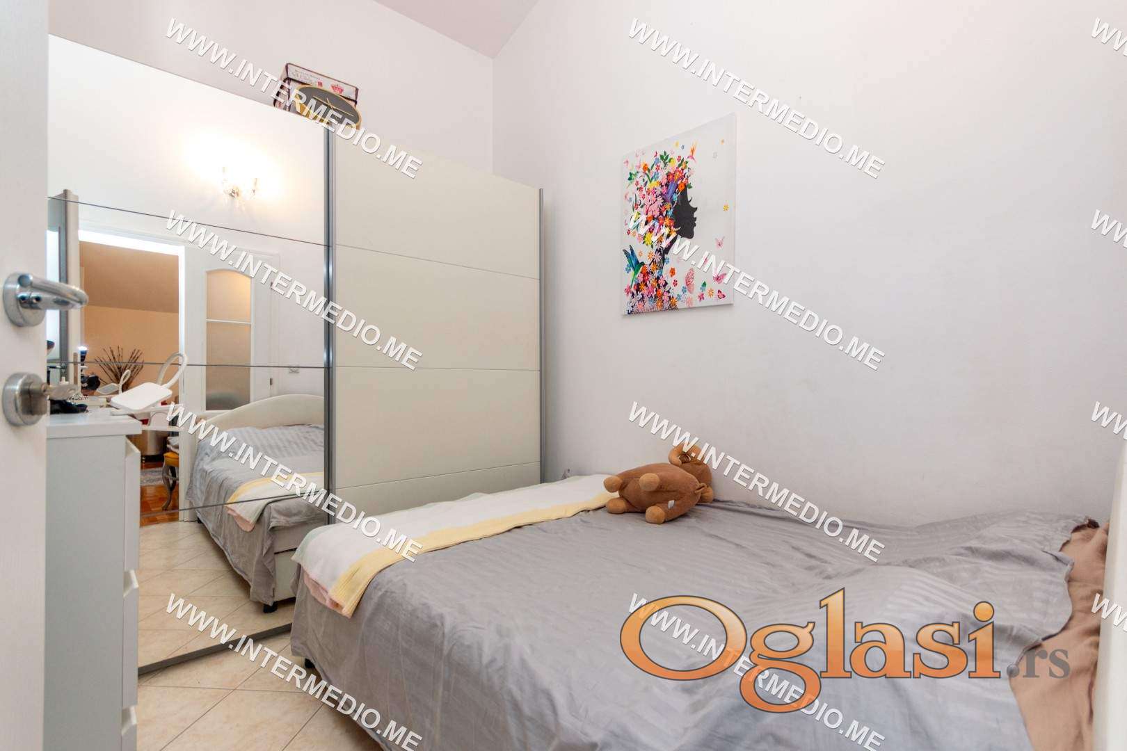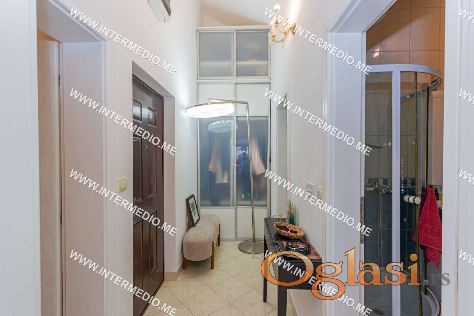 Struktura stana: Ulazni hodnik sa prostorom za ugradni ormar sa koga se pristupa dječioj spavaćoj sobi, kupatilu kuhinji i dnevnom boravku sa koga se u nastavku dolazi do druge spavaće sobe i ustakljene terase sa pogledom na more.