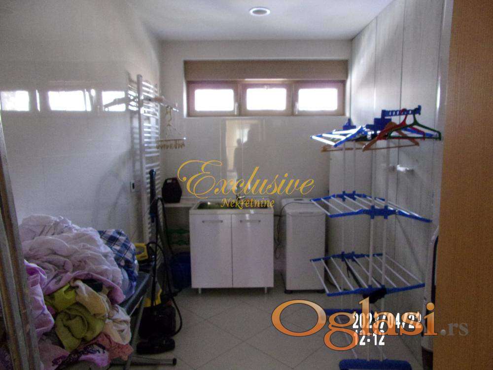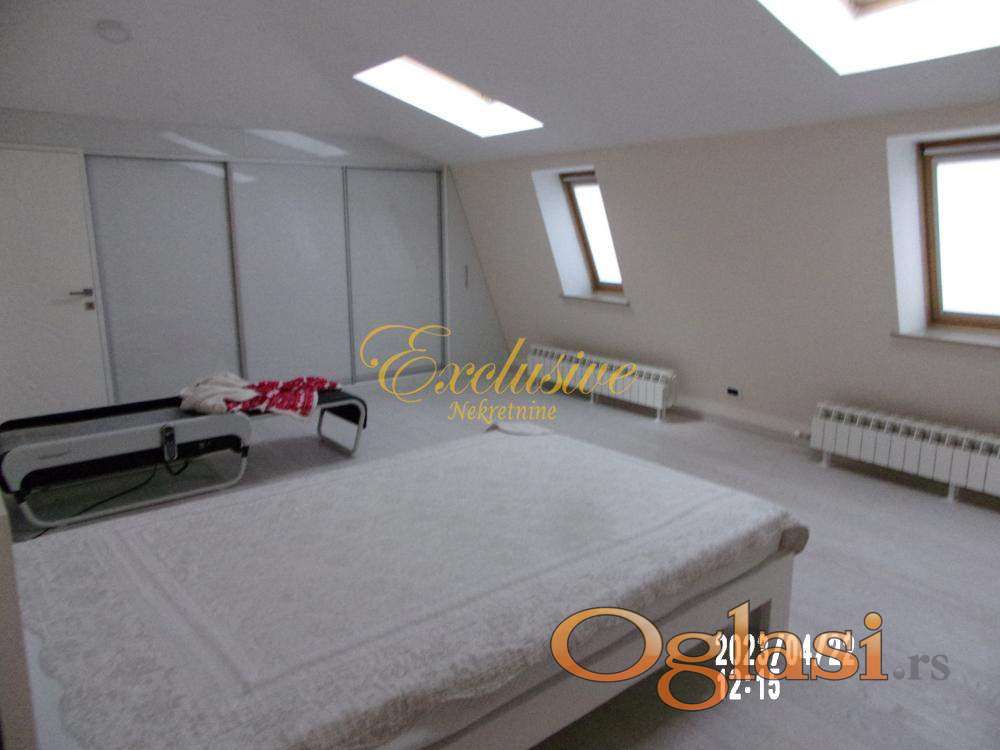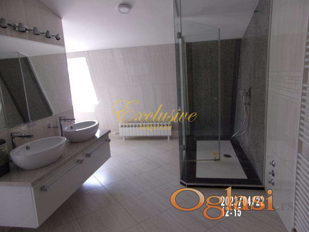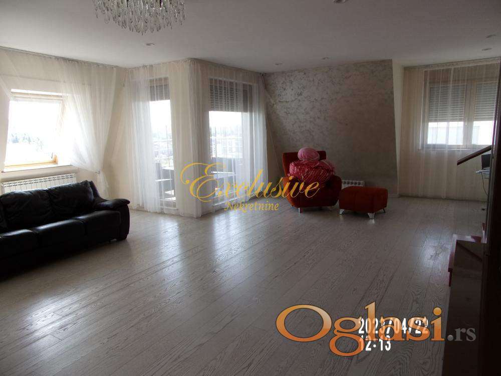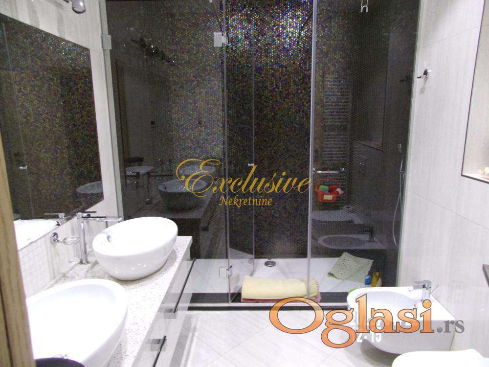 arno/toplotne pumpe), klima, jedno garažno mesto, lift, video nazdor, obezbeđenje, alarm, ostava, interfon, telefon, ktv. Dedinje spada u jedan od najmirnijih i najlepših delova Beograda. Vremenom se profilisao kao mesto za luksuzan život van gradske vreve, a nadomak centra grada, gde se kultura i karakter individualnog stanovanja u privatnim vilama prepliće sa probranim susedstvom rezidencijalnih objekata i ambasada i luksuznih stambenih zgrada. U prilici smo da Vam ponudimo retko luksuznu i komfornu nepokretnost u najlepšem i najmirnijem delu Lisičijeg potoka, na par stotina metara od Kraljevog kompleksa. Stanse nalazi na dva poslednja nivoa četvorospratnice, sa liftom, zidane 2014. godine. Zgrada je primer kvalitetne i luksuzne gradnje, pa je uz dobro održavanje zadržala izgled novog. Stan je izuzetno luksuzan, komforan, funkcionalan i svetao. Koncipiran je tako da je donji deo dnevni a gornji spavaći. Sve prostorije su vrlo komforne. Stan, zgrada i prostor oko zgrade su do najsitnijih detalja osmišljeni i urađeni vrlo luksuzno i kvalitetno. U stanu su ugrađeni najkvalitetniji materijali i oprema. Notu luksuza dodatno pojačava estetska rasveta sa ukusom raspoređena po stanu. Komforu naročito doprinose dva toaleta na donjem nivou i dva kupatila na gornjem. Iz dnevnog boravka se izlazi na lepu terasu, sa širokim otvorenim pogledom, kao stvorenu za uživanje. Uz spavaće sobe se nalaze i veliki garderoberi. Grejanje je etažno na kombinaciju gasa, solarne energije i toplotne pumpe, pa je vrlo ekonomično. U cenu je uračunat kompletan nameštaj i oprema, vrhunskog kvaliteta. Kuriozitet je direktna veza liftom od stana do garaže u zgradi, gde se nalaze garažno mesto i ostava . Deljiv je na više stambenih jedinica. Od prostorija: Donji nivo – antre, radna soba, tehnička soba, vešeraj, dečija igraonica, kuhinja objedinjena sa trpezarijom, ostava, dva toaleta, dnevni boravak i terasa. Gornji nivo – predsoblje, dva kupatila, tri spavaće sobe, višenamenska soba, dva garderobera. Uknjiženo na 369m2 i odmah useljivo.Video nadzor, Video interfon, Interfon, Internet, Telefon, Kablovska, Klima, Ostava ,