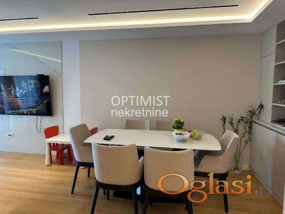 Optimist nekretnine Vam nude luksuzan, funkcionalan, namešten, svetao i brzo useljiv trosoban stan odličnog rasporeda, na petom od osam spratova potpuno nove zgrade iz 2023. godine, sa dva lifta. Stan se sastoji od dnevnog boravka sa kuhinjom i trpezarijom, dve spavaće sobe, kupatila i terase. Ima centralno grejanje po potrošnji. Troškovi infostana u toku godine su 5.000 dinara, a tokom zimskih meseci 10-11 hiljada. Stan je okrenut ka jugoistoku, sa pogledom na Avalu. Nema svoje parking mesto ali ga vlasnik iznajmljuje za 100€ mesečno, što bi i budući mogao da nastavi da koristi i plaća. Stan se nalazi na idealnom mestu, u blizini svih infrastrukturnih objekata i sadržaja neophodnih za prijatan i kvalitetan svakodnevni život. Tu je i veliki broj autobuskih linija koji ovaj kraj povezuju sa drugim delovima grada. Prodaje se namešten opremljen vrhunskom tehnikom i luksuznim nameštajem. Sve preporuke. Hvala što ste izdvojili vreme za naš oglas! Agencijska provizija 2%