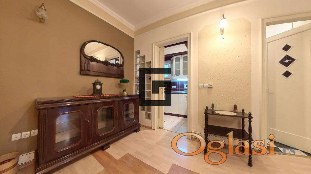 Uknjižen je, lep raspored prostorija: ulazni hodnik, dnevni boravak, kuhinja, trpezarija i kupatilo.