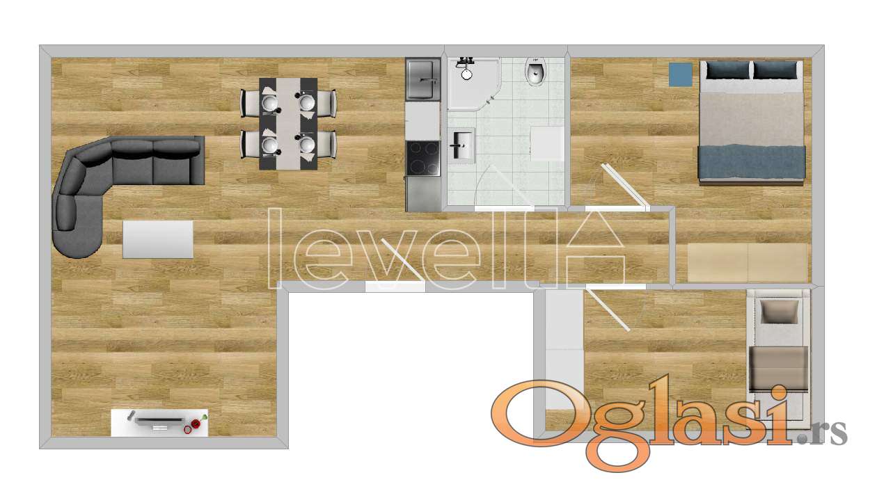 oko 50m², što omogućava znatno veći osećaj prostora i komfora. Stan je funkcionalnog
