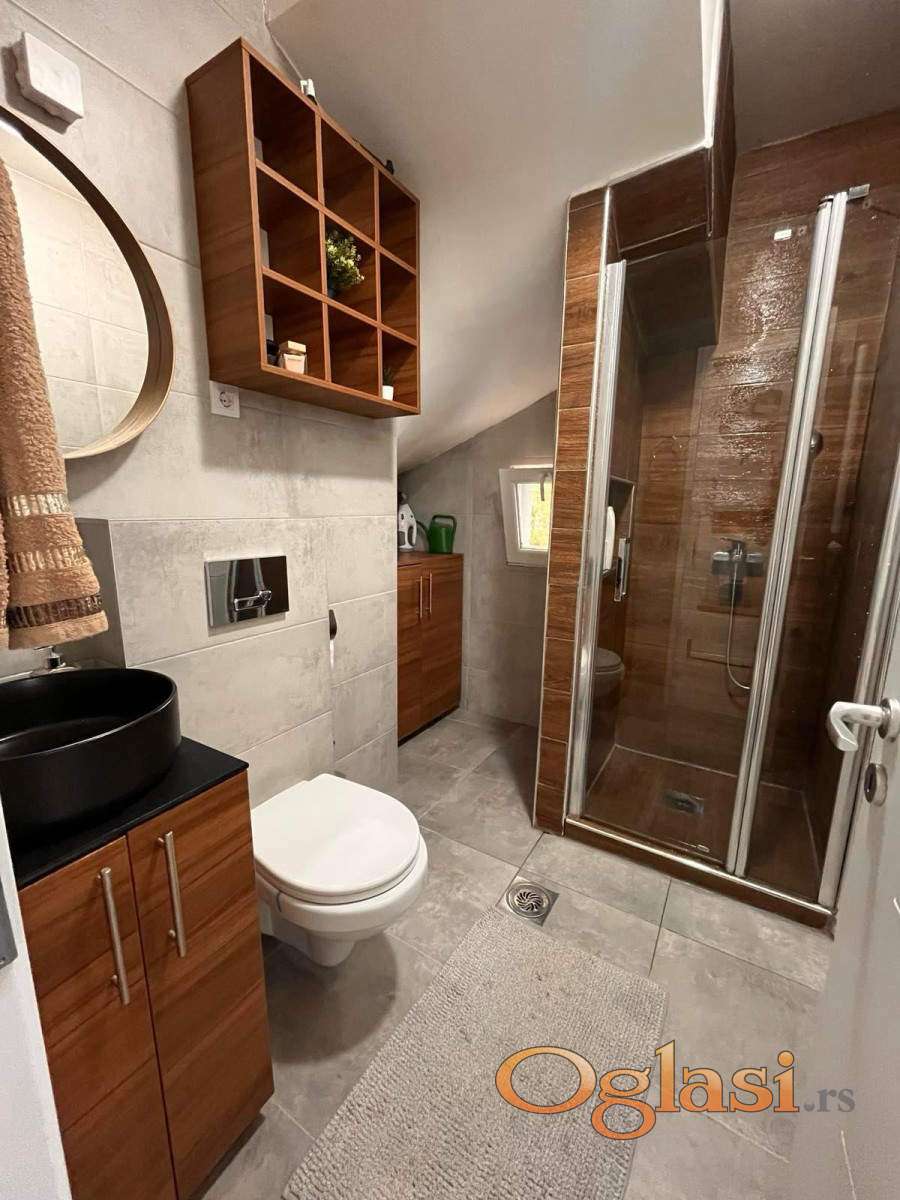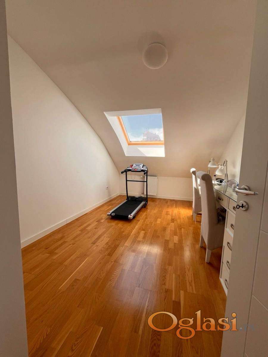 LEVEL PROPERTY, agencija za nekretnine, Vam predstavlja ovaj fantastičan, moderno opremljen stan od 100m2 u mirnom delu grada, idealan za porodičan život. Stan je izuzetno osvetljen prirodnom svetlošću tokom celog dana, jugoistočno orijentisan, klimatizovan, centralno grejanje. Prodaje se kompletno namešten, spreman za useljenje. Ova nekretnina se sastoji od dva nivoa, u donjem delu se nalazi prostran i veoma svetao dnevni boravak sa trpezarijom koji ima izlaz na lepu terasu sa pogledom na park, potpuno opremljena kuhinja, moderno kupatilo sa tuš kabinom. Unutrašnjim stepenicama se dolazi na gornji deo koji se sastoji od četiri sobe, jedna je adaptirana u garderober, Vi možete urediti kako Vama odgovara. Pored soba se nalazi veliko kupatilo sa kadom. U neposrednoj blizini ove nekretnine nalaze se škola, vrtić, dom zdravlja, pijaca, takođe i nekoliko linija gradskog prevoza koji obezbeđuje odličnu povezanost sa centrom.