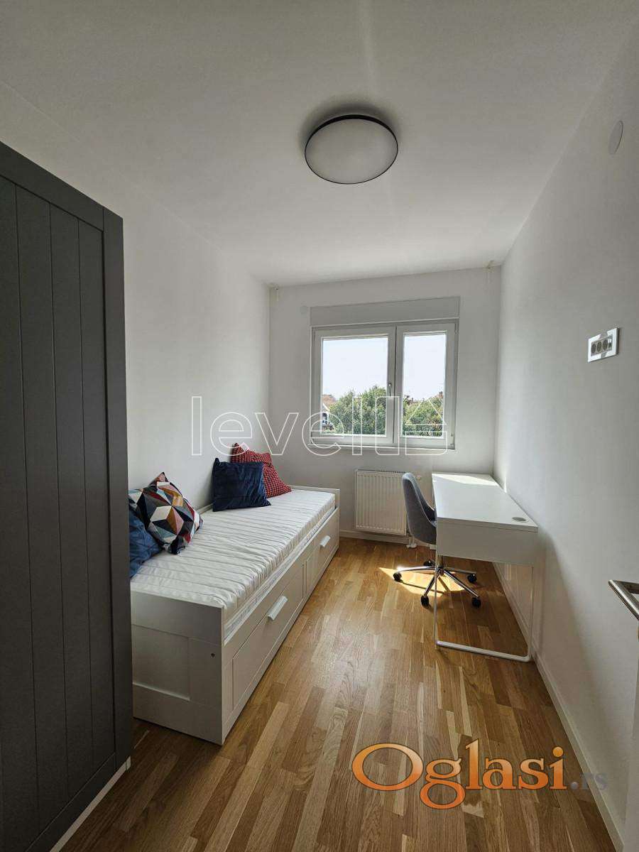 LEVEL PROPERTY, agencija za nekretnine Vam predstavlja odličan, kompletno opremljen trosoban stan u popularnom kompleksu Park Novom. Orijentisan je ulično, gleda na Milana Ješića Ibre, a nalazi se na petom spratu. Sastoji se iz dnevnog boravka sa kuhinjom i trpezarijom, dve spavaće sobe, ostave, dva mokra čvora, hodnika i terase. Strukturno je odlično organizovan i svaki m2 je iskorišćen. Vlasnička dokumentacija je uredna i postoji mogućnost kupovine putem stambenog kredita. Takođe, postoji mogućnost kupovine garažnog mesta. Trenutno je pod zakupom.