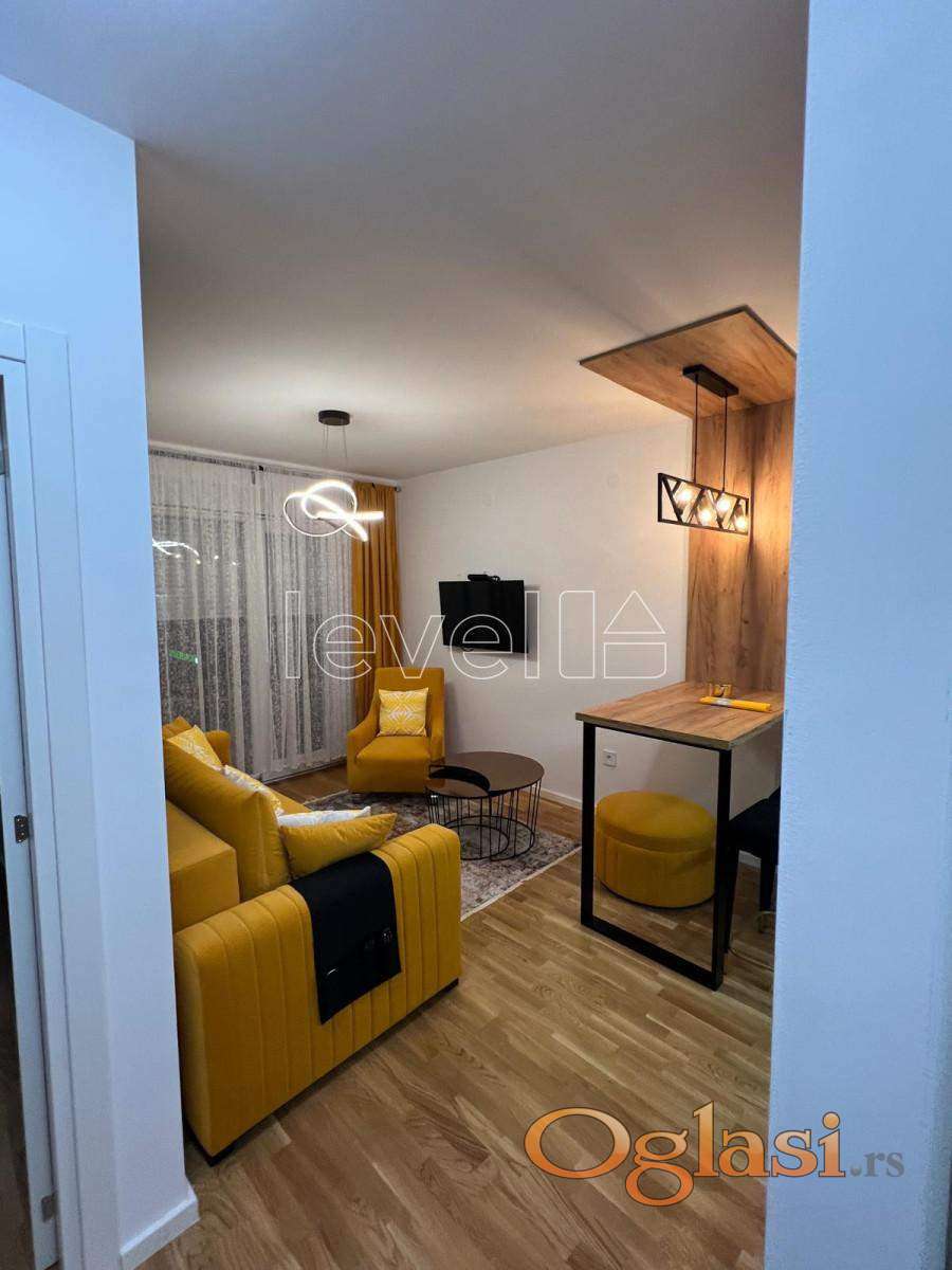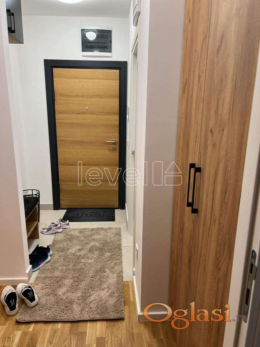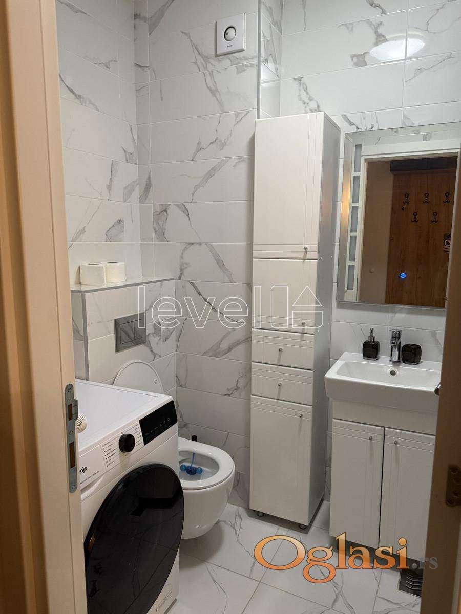 Enterijer je pažljivo uređen – moderna kuhinja, udoban dnevni deo, spavaća soba sa prostorom za garderobu i lepo kupatilo. Sve je već tu: od tehnike do detalja. Samo treba da donesete lične stvari.