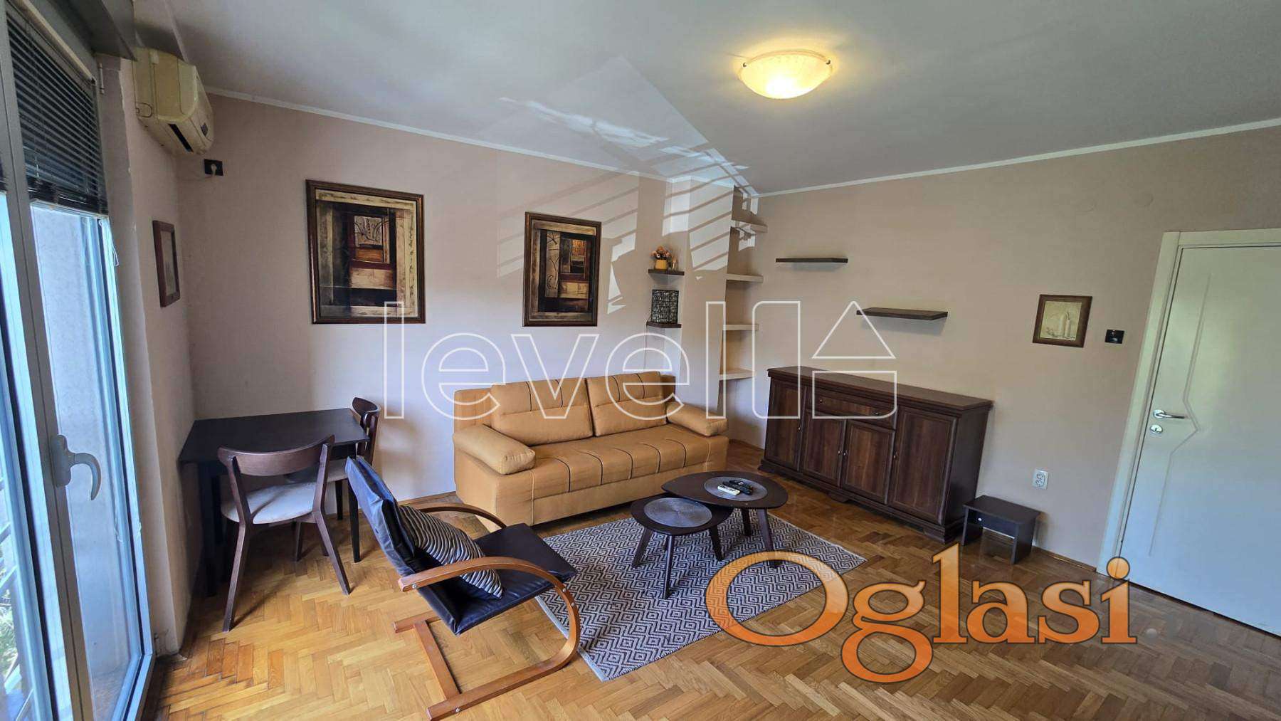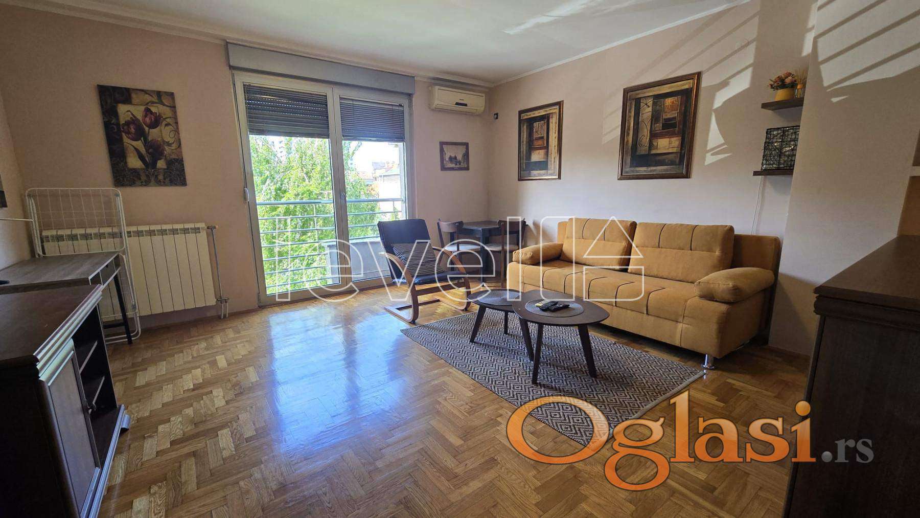 Stan se nalazi u mirnom i zelenilom okruženom delu ulice, u zgradi sa negovanim ulazom. Unutrašnjost odiše toplinom: dnevna soba je prostrana, svetla, sa francuskim balkonom i lepim pogledom, dok je kuhinja potpuno odvojena, sa dovoljno mesta za sve svakodnevne potrebe. Kupatilo ima prirodnu ventilaciju. Drveni parket, klasična keramika i pogled sa zelenim kadrom u pozadini čine da ovaj stan zrači domaćinskom, smirenom energijom.