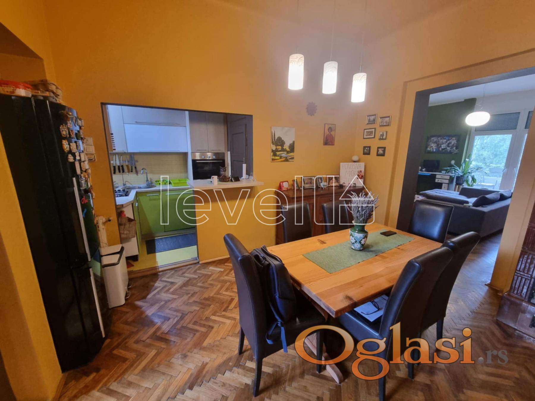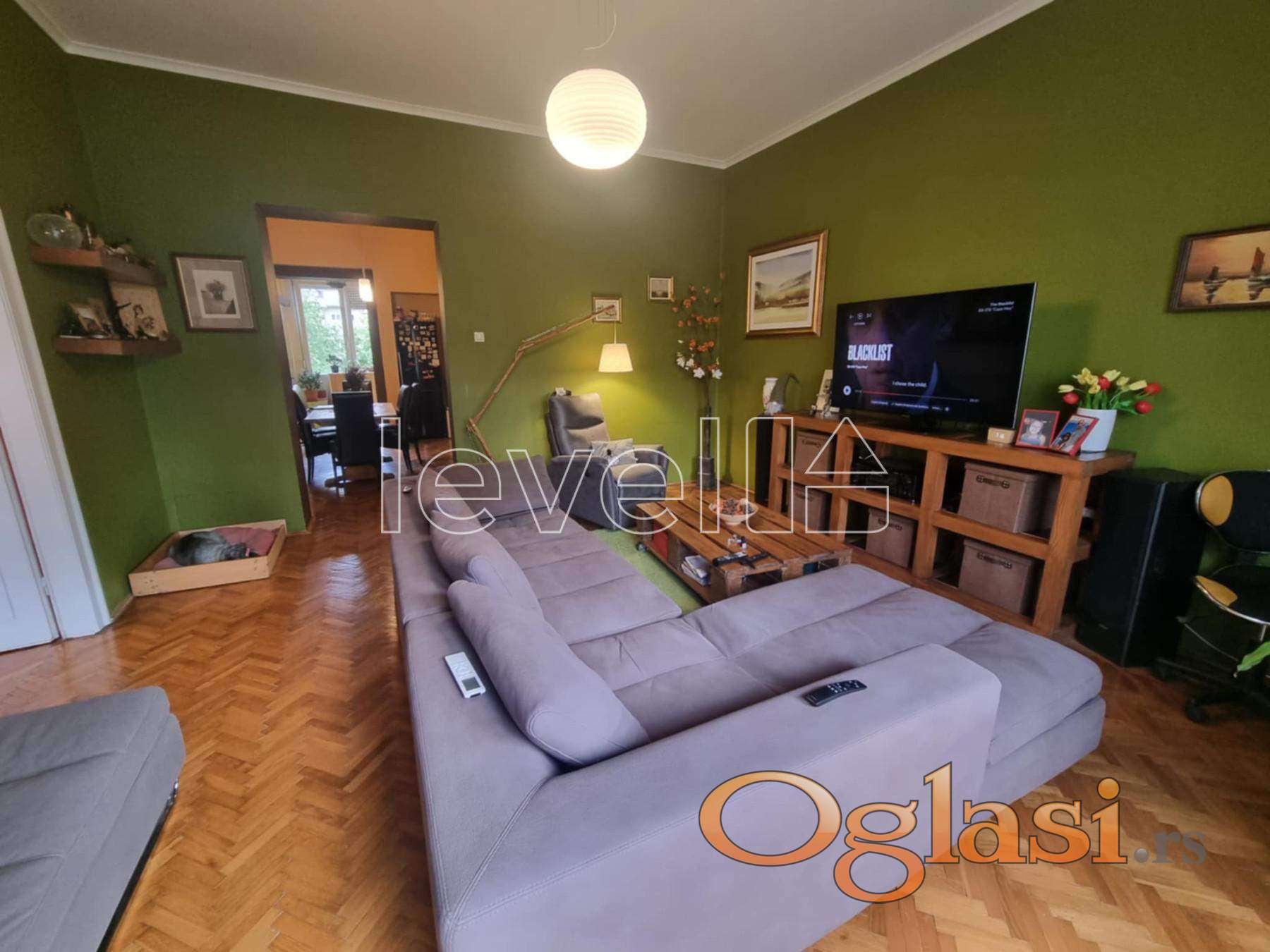 dnevnim boravkom punim prirodnog svetla. Autentični parket,