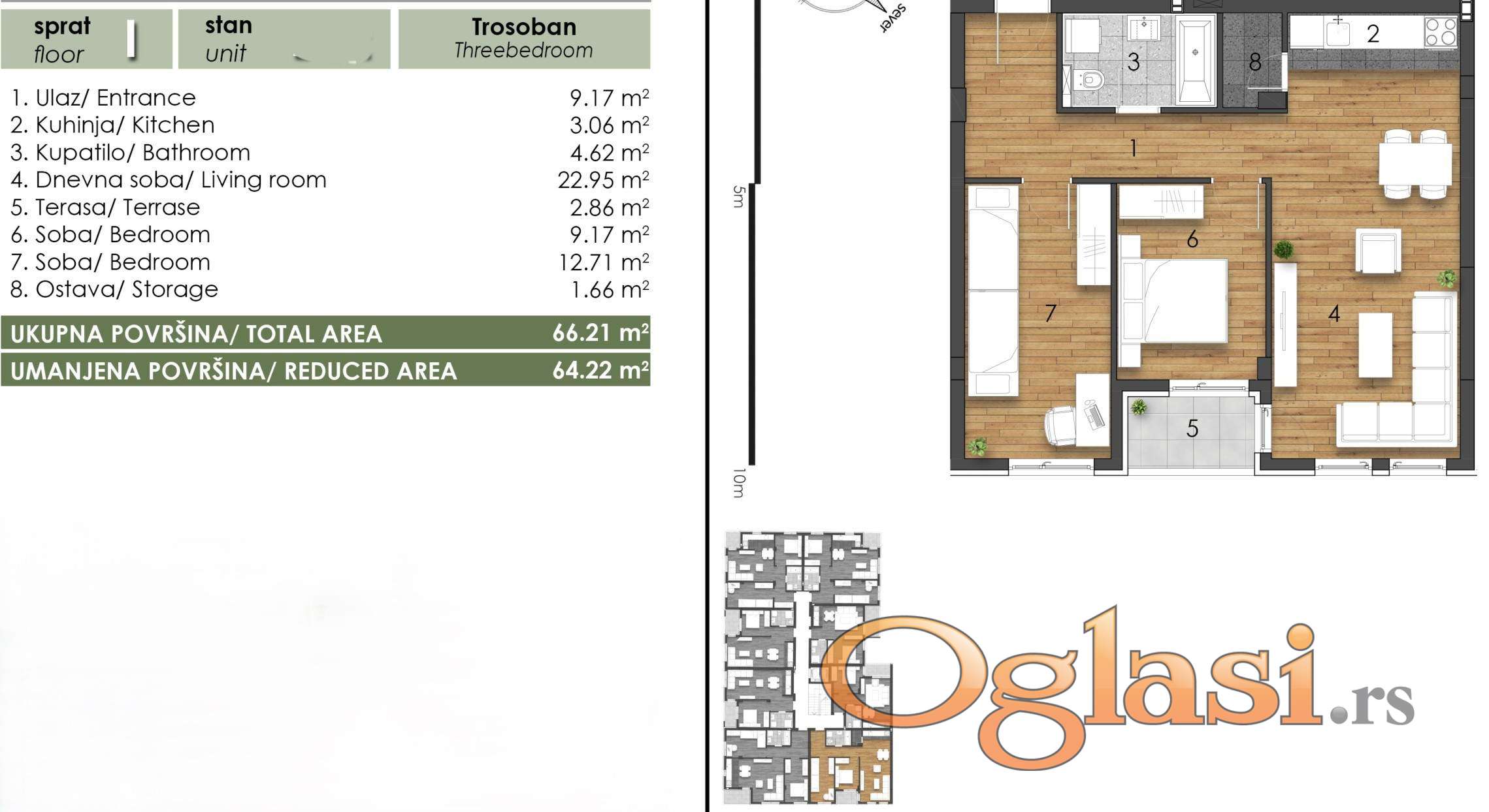 | Sobnost: | Trosoban |